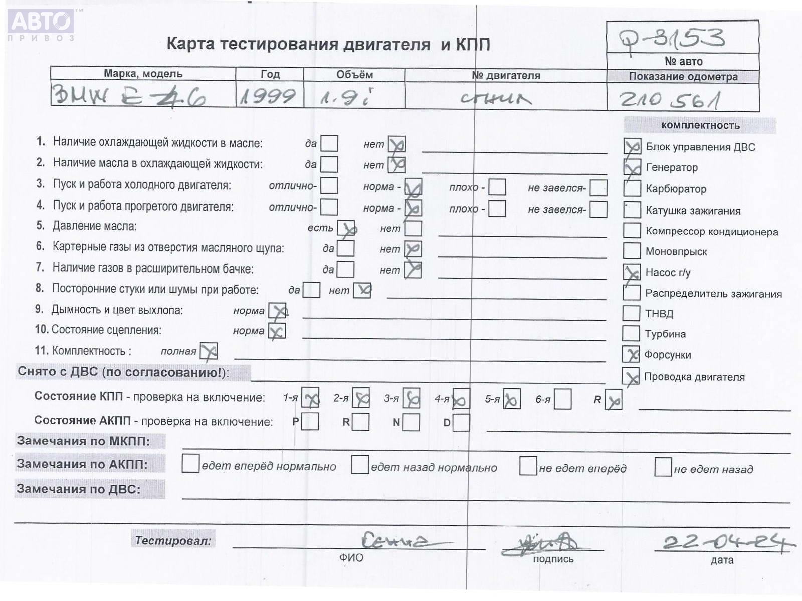 | Марка / Модель / Год: | BMW 3 E46 (1998-2006) 1999 |