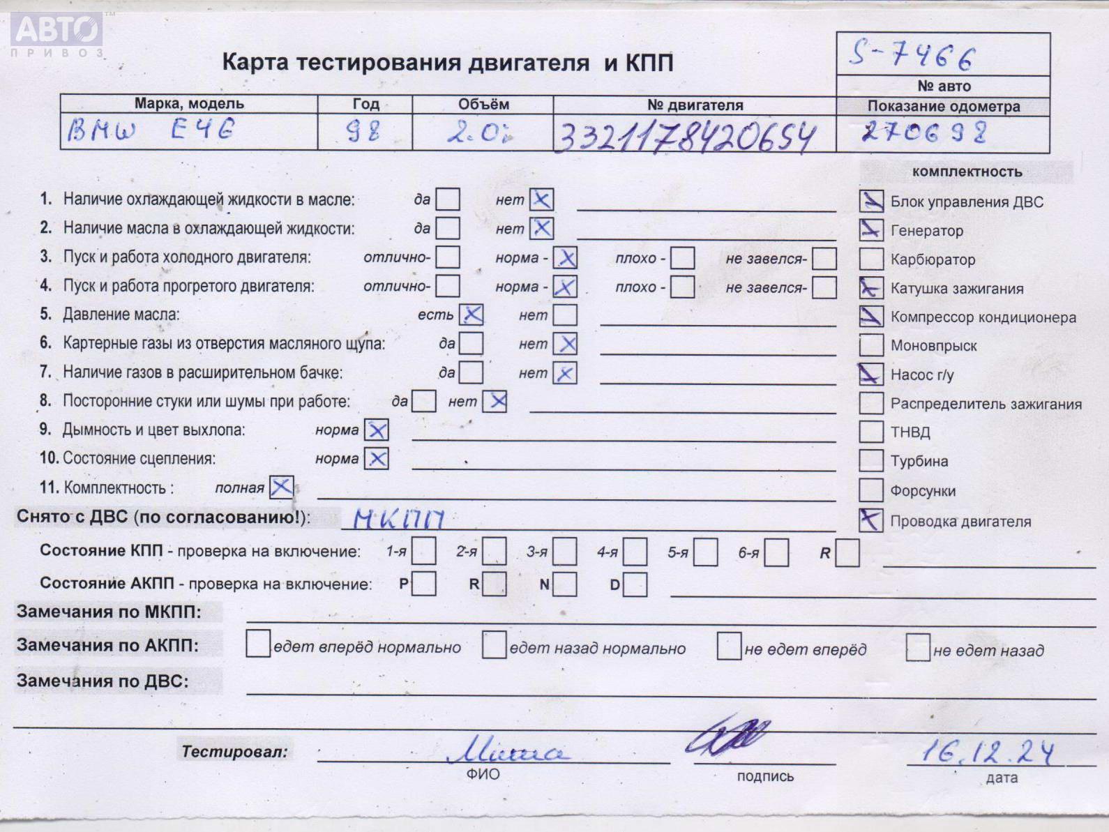 | Автомобиль / VIN: | S7466 WBAAM11010JM30897 |