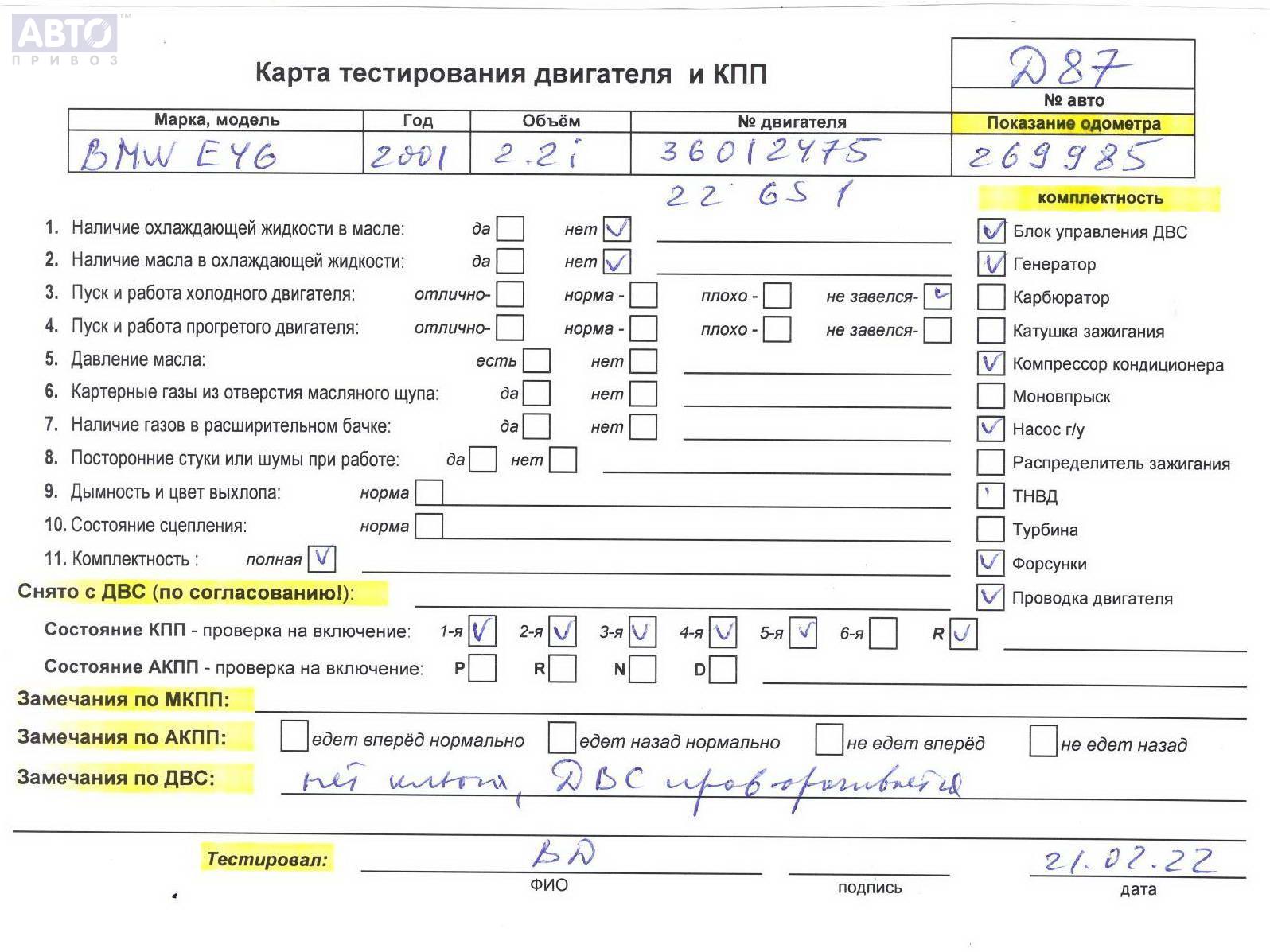 | Двигатель / КПП: | 2.2л Бензин i Мех. |