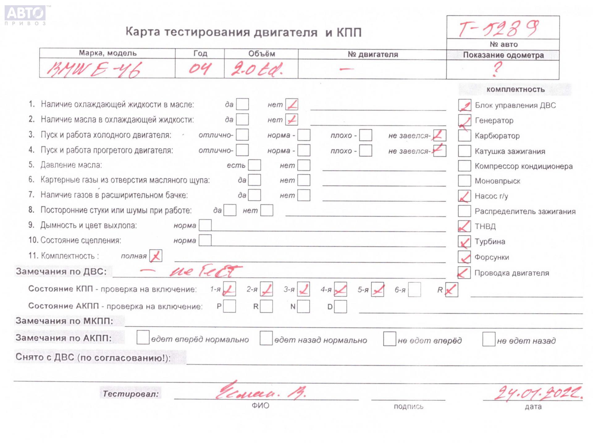 | Марка / Модель / Год: | BMW 3 E46 (1998-2006) 2004 |