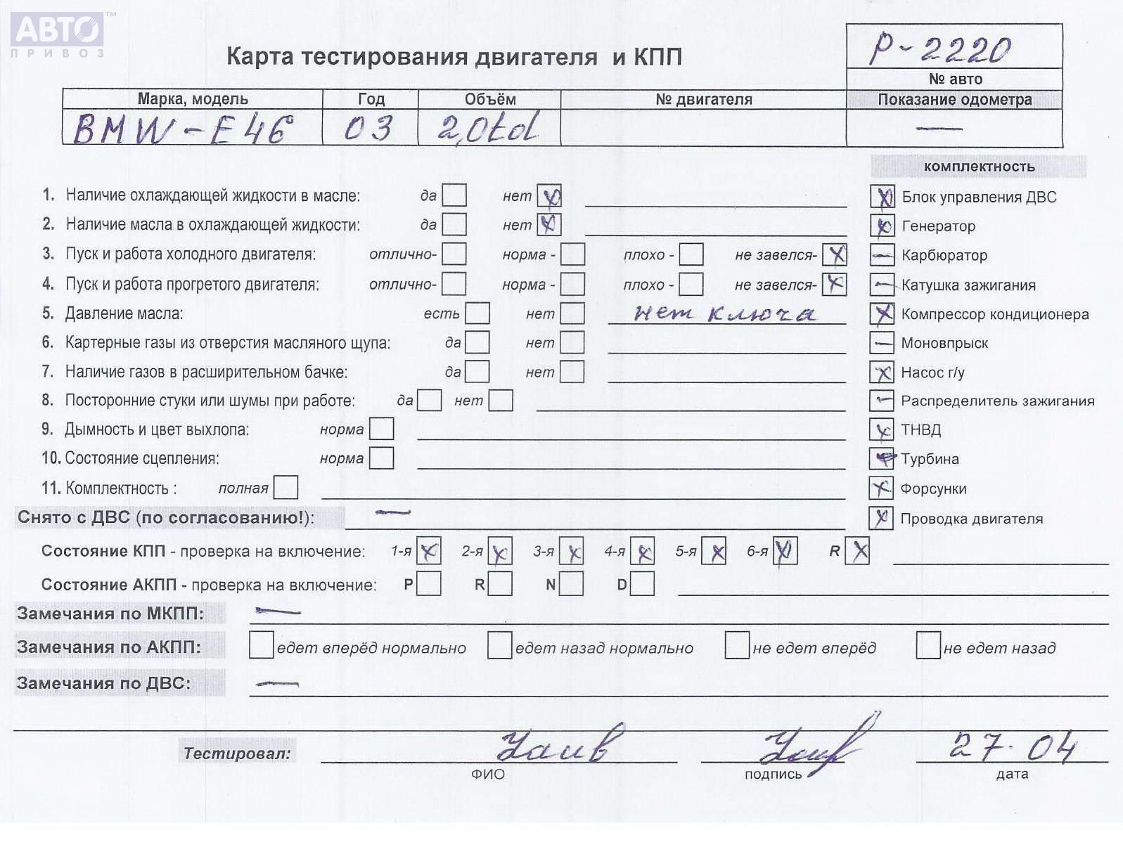| Автомобиль / VIN: | P2220 WBAAP71080PP01297 |