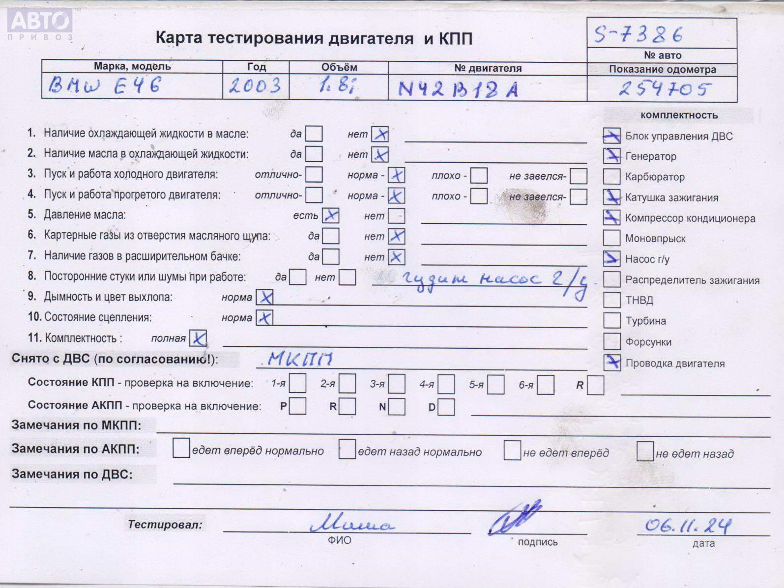 | Примечания: | N42, от насоса к рейке |