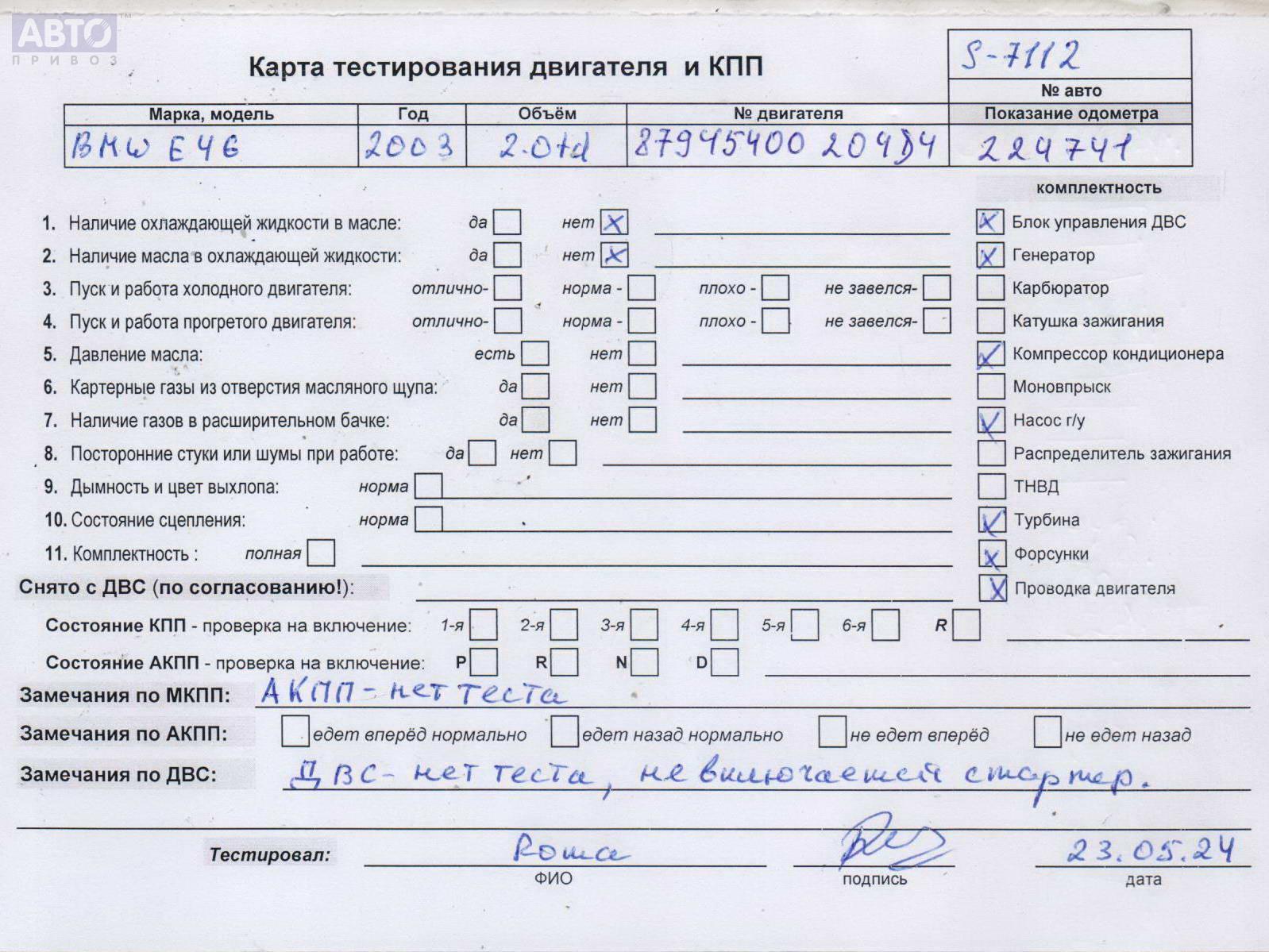 | Автомобиль / VIN: | S7112 WBAAP71020PN43071 |