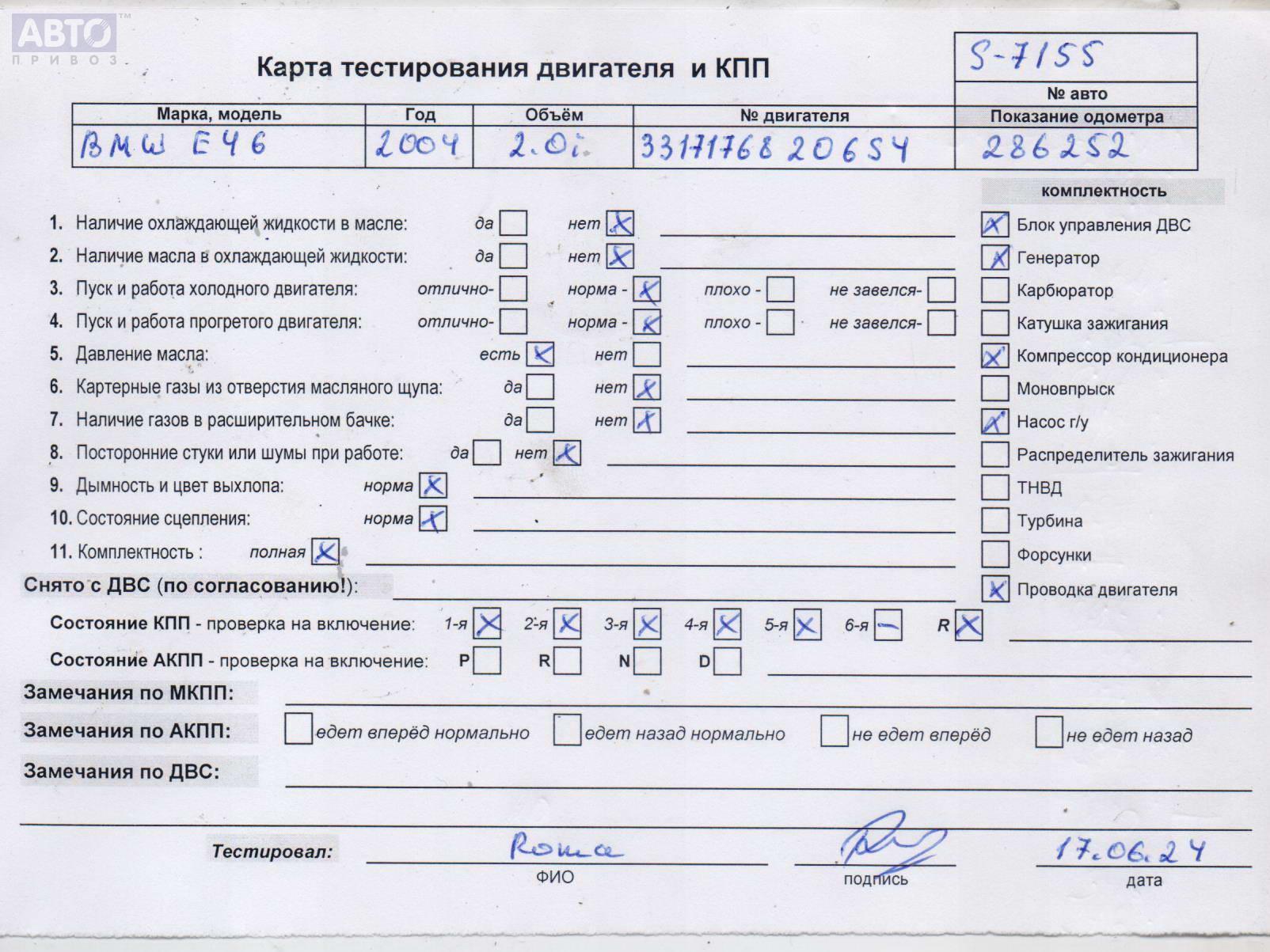 | Автомобиль / VIN: | S7155 WBAAM11020JM30021 |