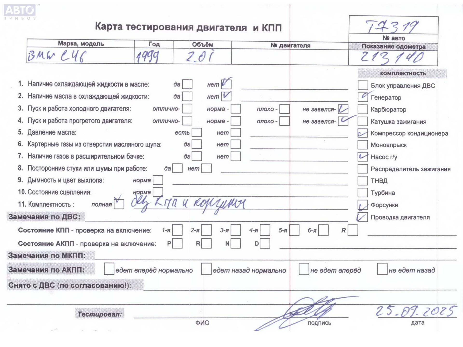 | Автомобиль / VIN: | T7319 WBAAY71000FZ61910 |