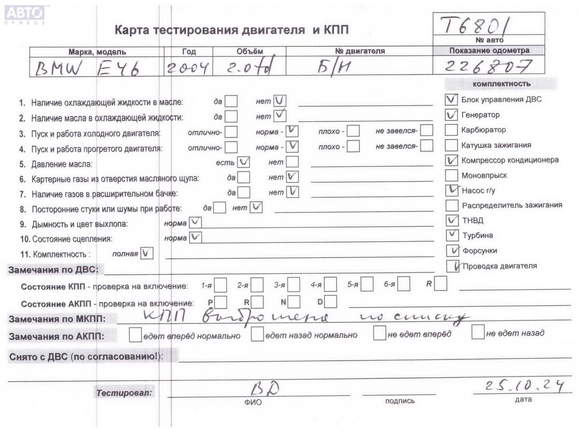 | Автомобиль / VIN: | T6801 WBAEU71030KV92268 |