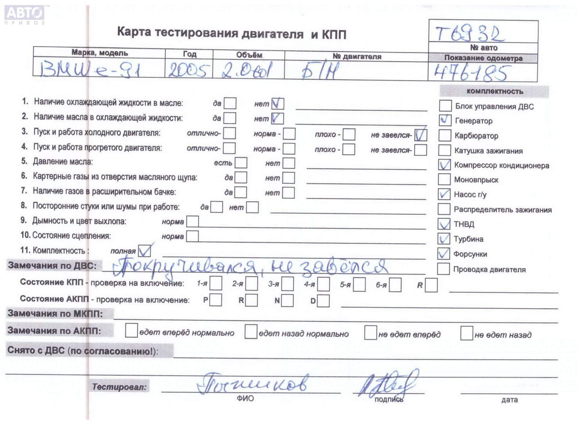 | Автомобиль / VIN: | T6932 WBAVU31050KZ01229 |