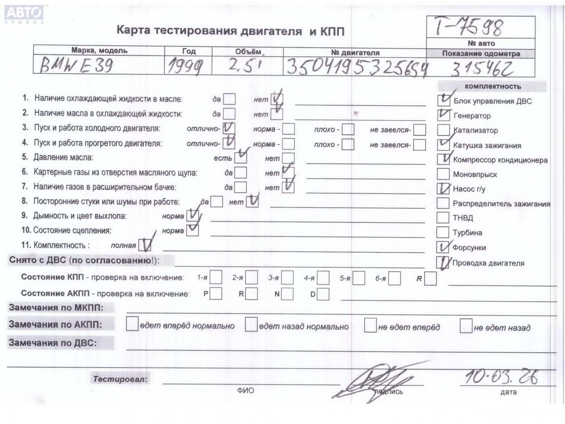 | Марка / Модель / Год: | BMW 5 E39 (1995-2003) 1999 |