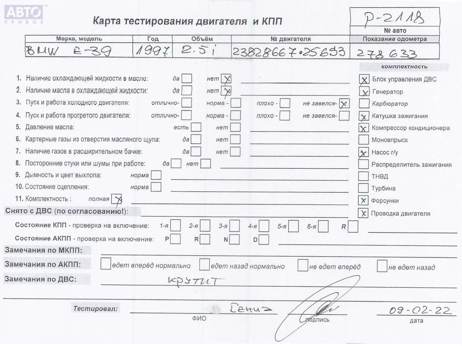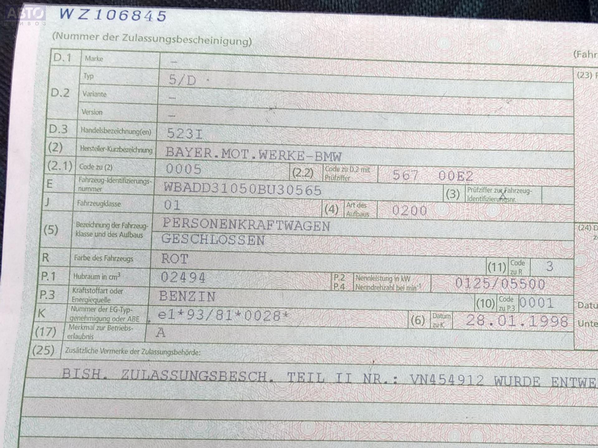| Марка / Модель / Год: | BMW 5 E39 (1995-2003) 1997 |