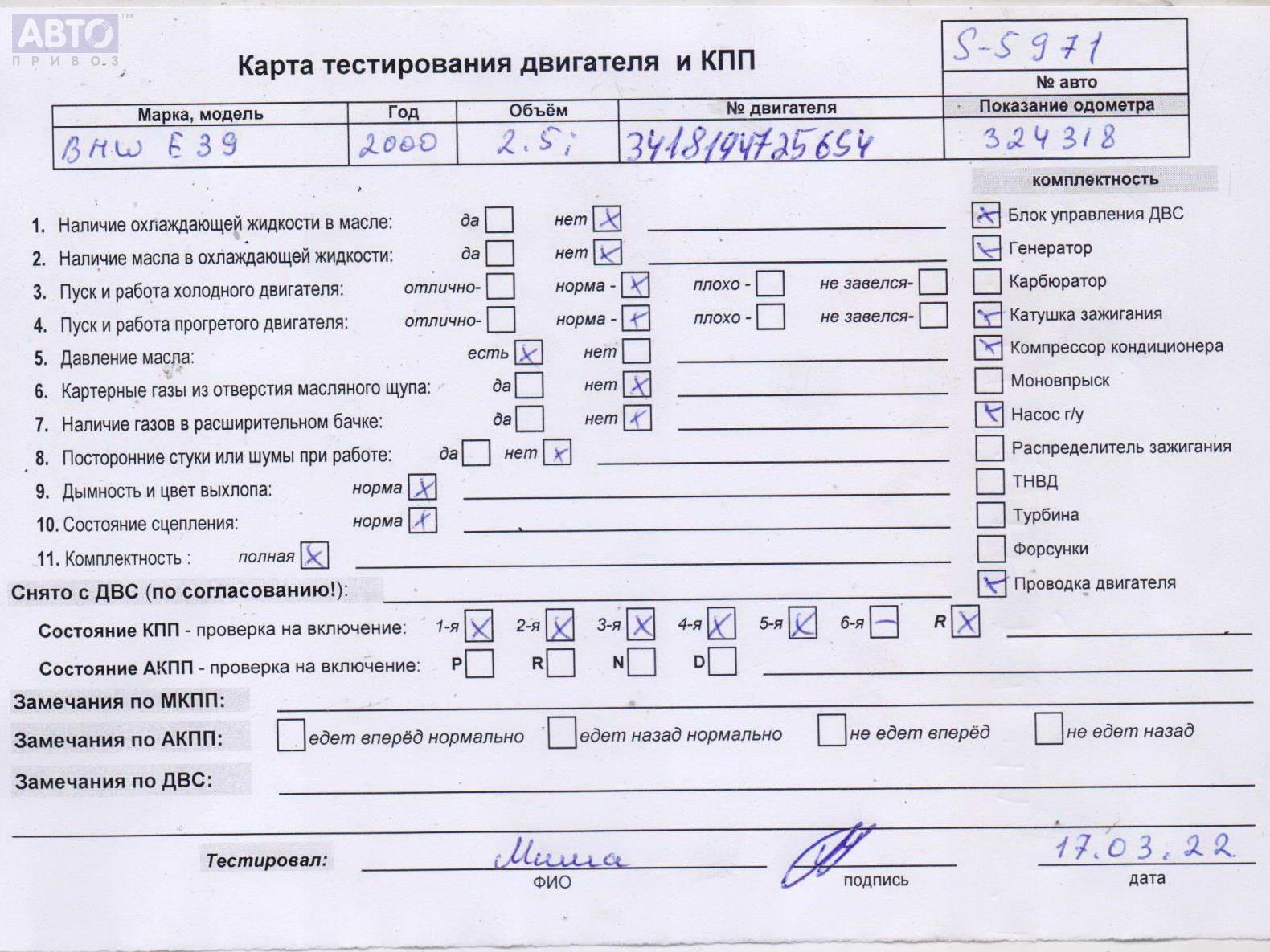 | Автомобиль / VIN: | S5971 WBADM31050GR05554 |