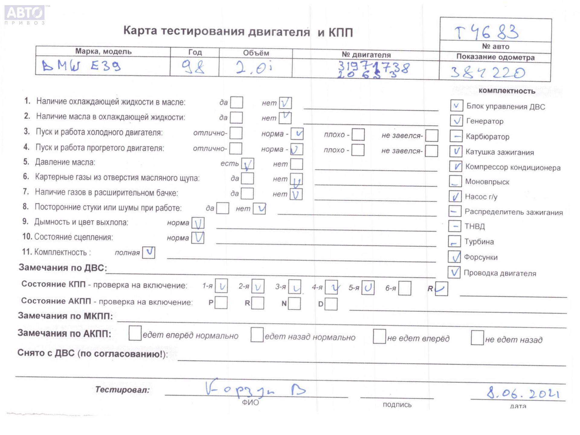 | Марка / Модель / Год: | BMW 5 E39 (1995-2003) 1998 |