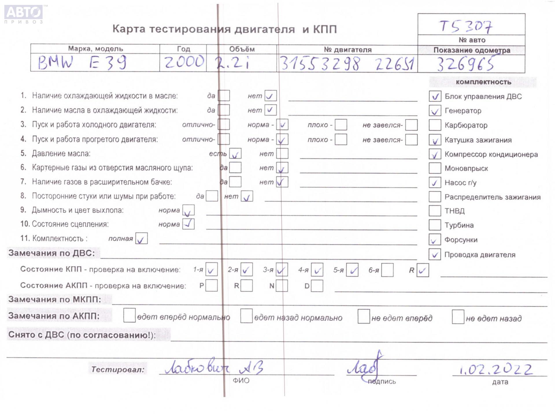 | Марка / Модель / Год: | BMW 5 E39 (1995-2003) 2001 |