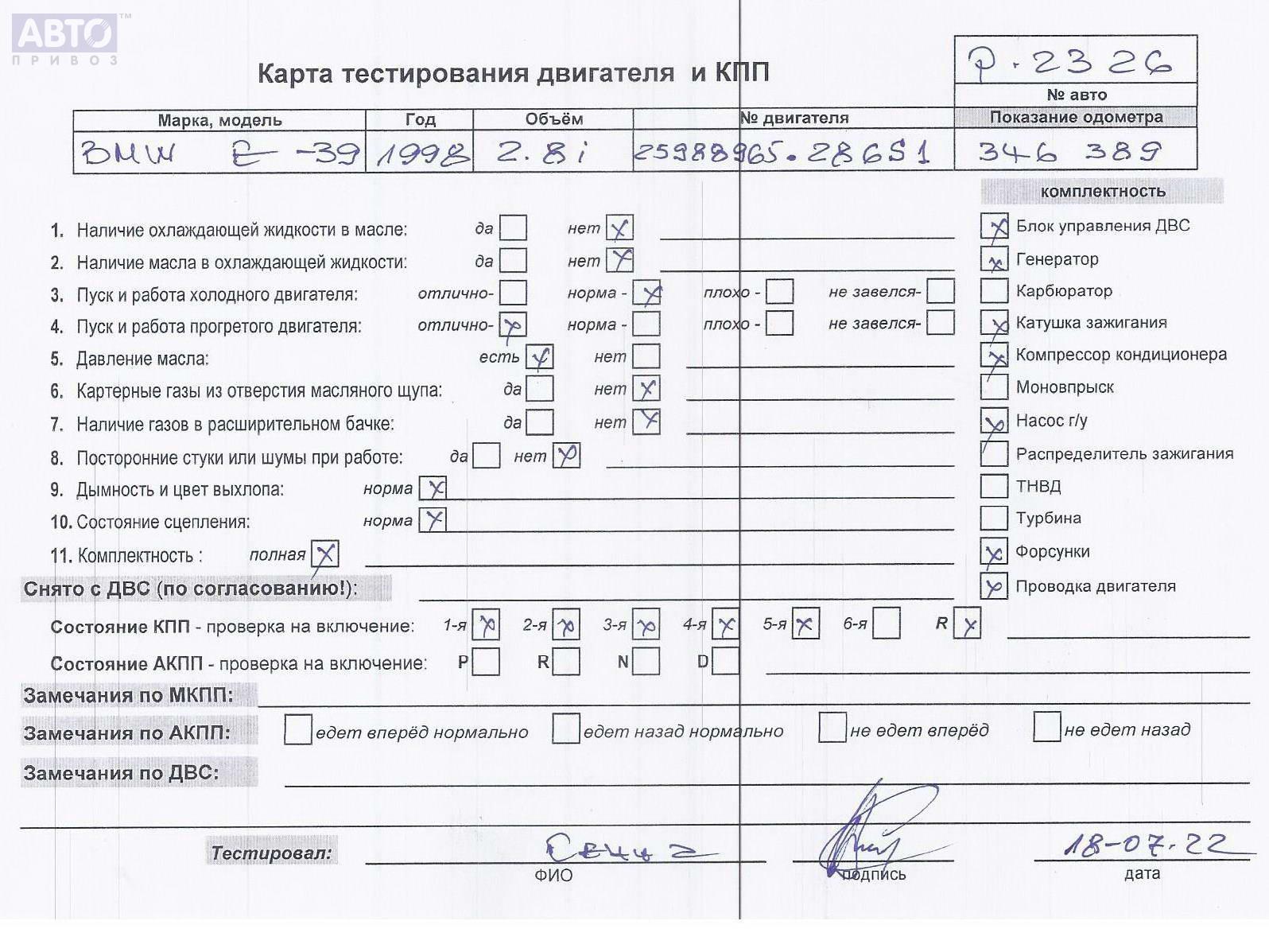 | Автомобиль / VIN: | P2326 WBADH51060BX18983 |