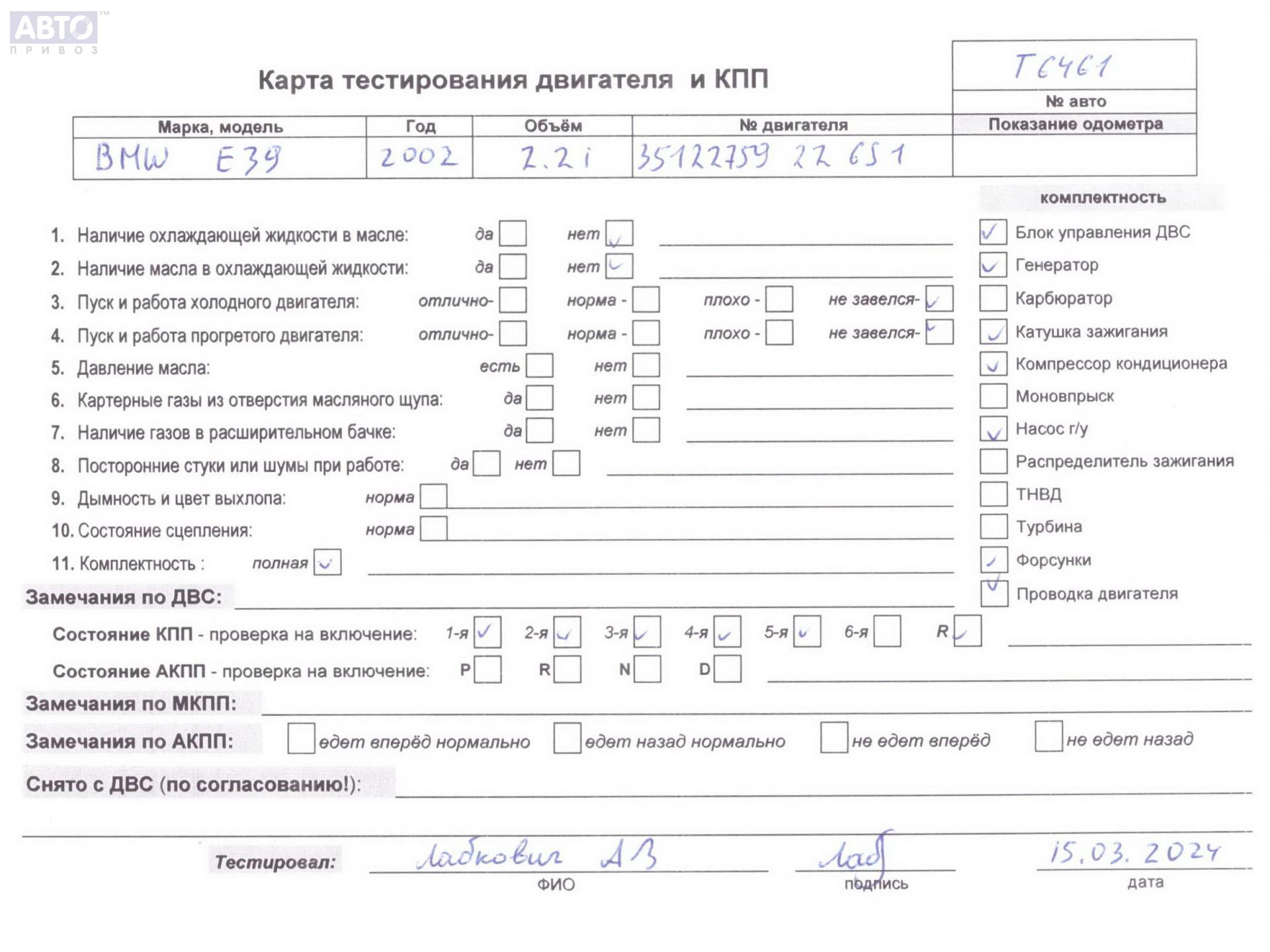 | Марка / Модель / Год: | BMW 5 E39 (1995-2003) 2002 |
