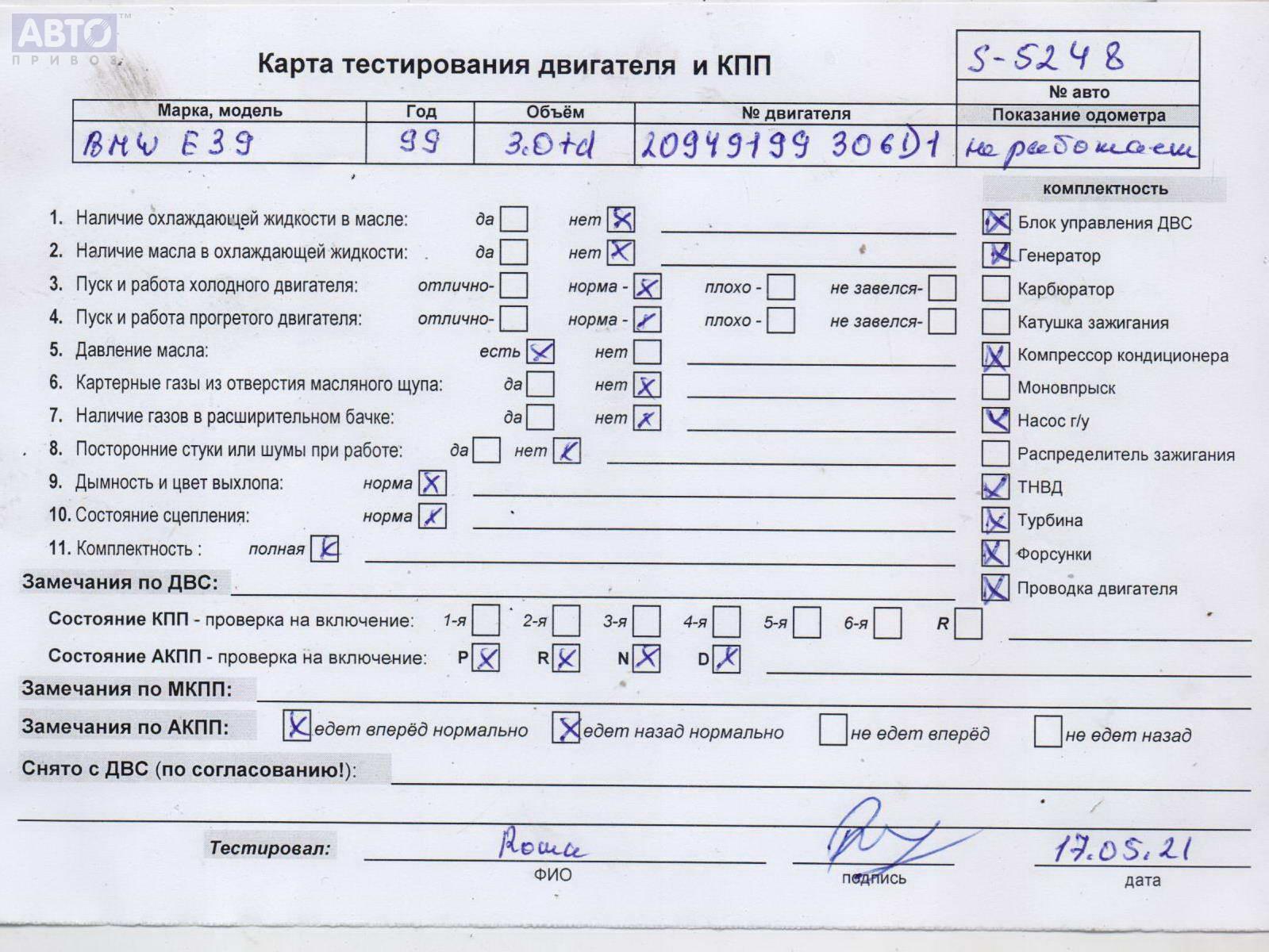 | Марка / Модель / Год: | BMW 5 E39 (1995-2003) 1999 |