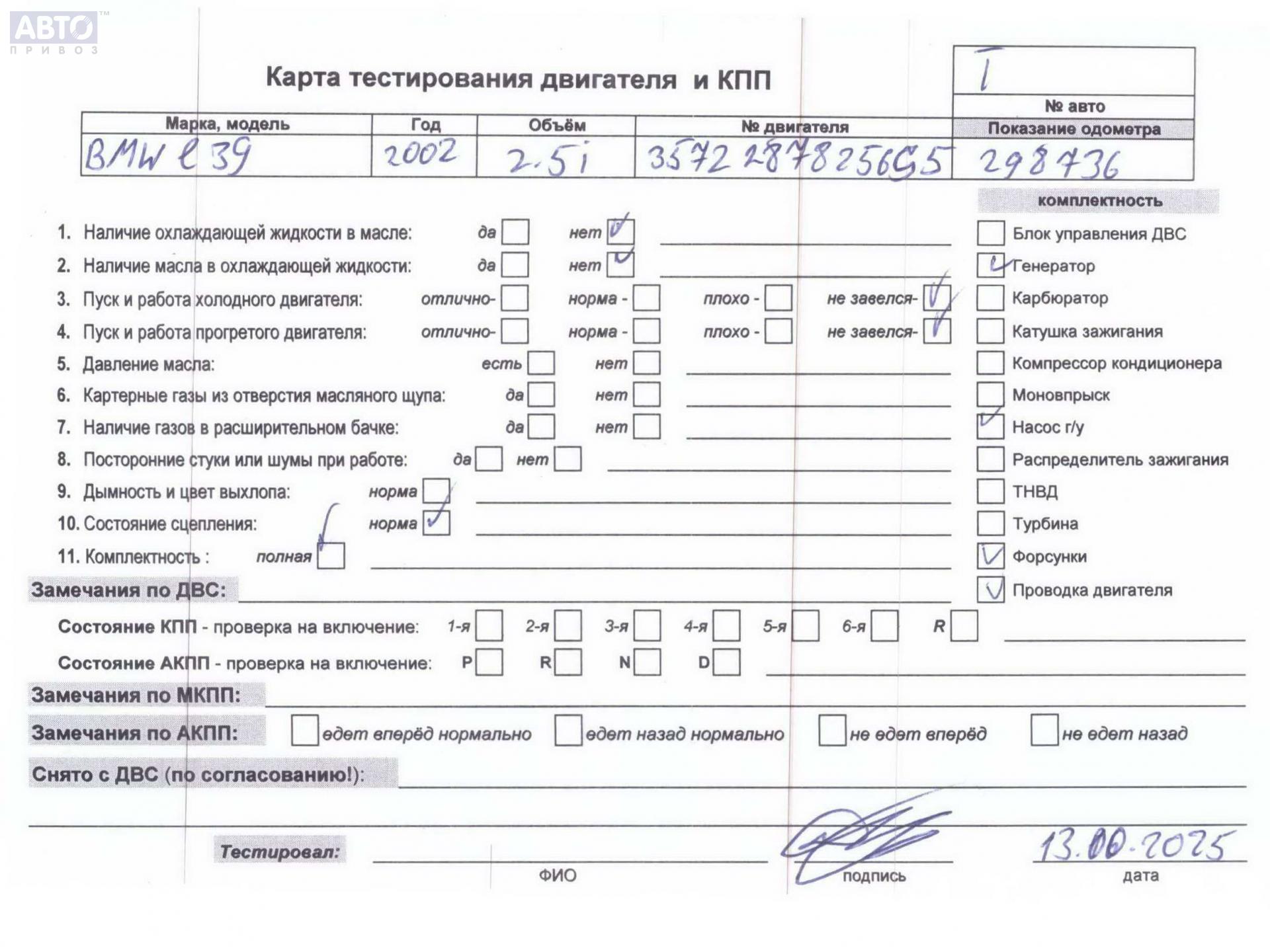 | Марка / Модель / Год: | BMW 5 E39 (1995-2003) 2002 |