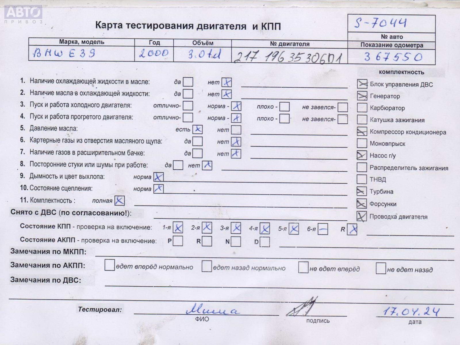 | Автомобиль / VIN: | S7044 WBADP71030GS68601 |