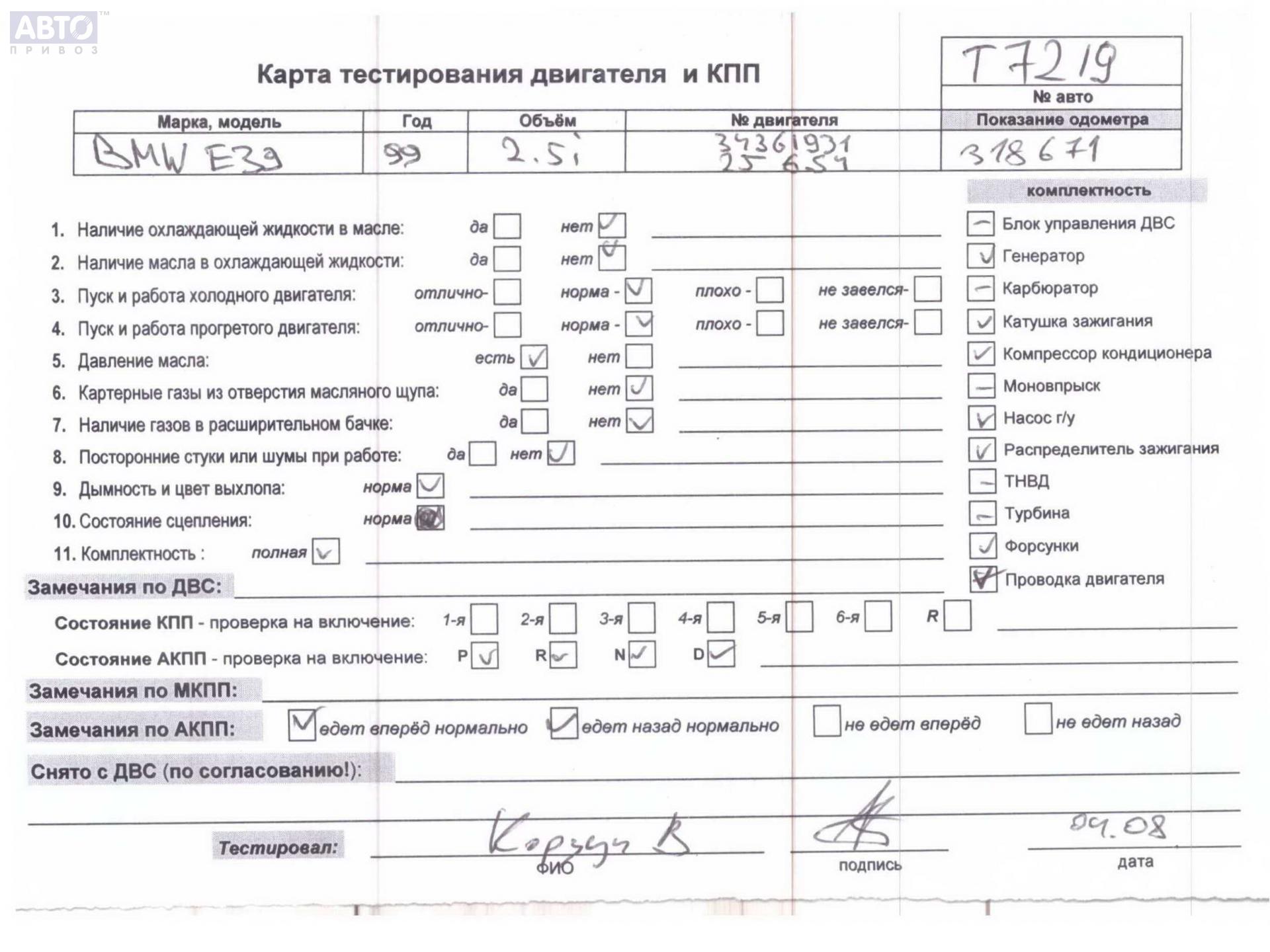 | Марка / Модель / Год: | BMW 5 E39 (1995-2003) 1999 |