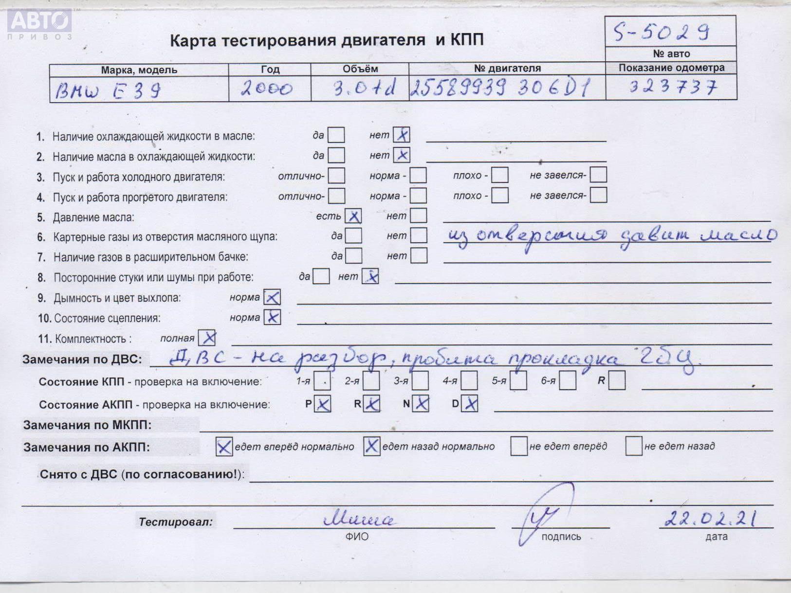 | Марка / Модель / Год: | BMW 5 E39 (1995-2003) 2001 |