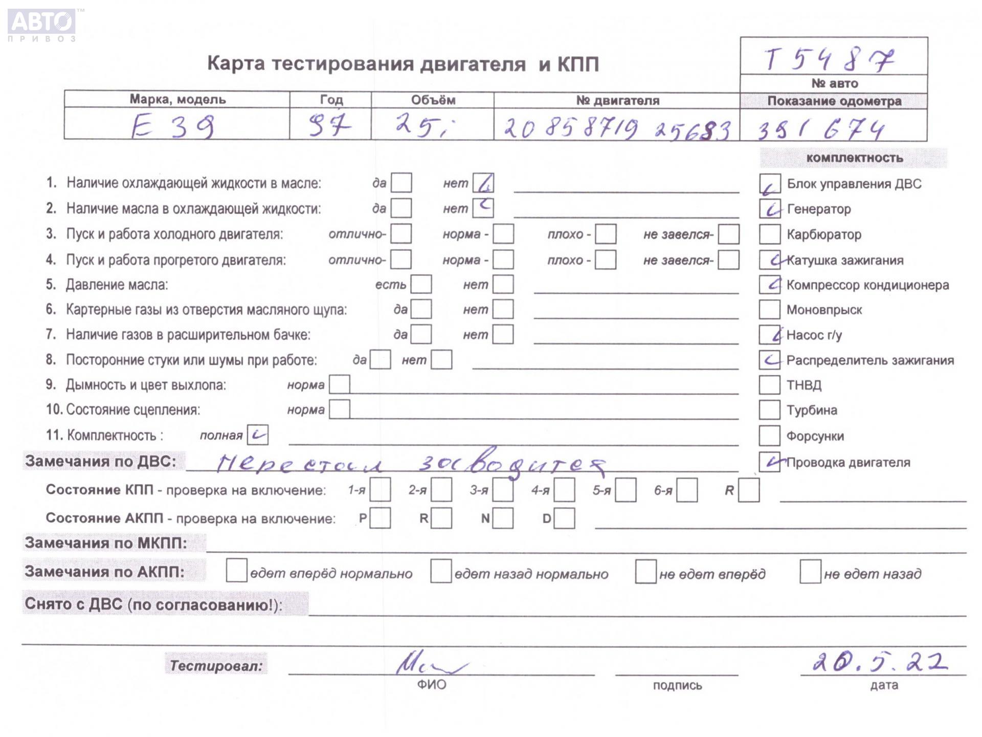 | Марка / Модель / Год: | BMW 5 E39 (1995-2003) 1997 |