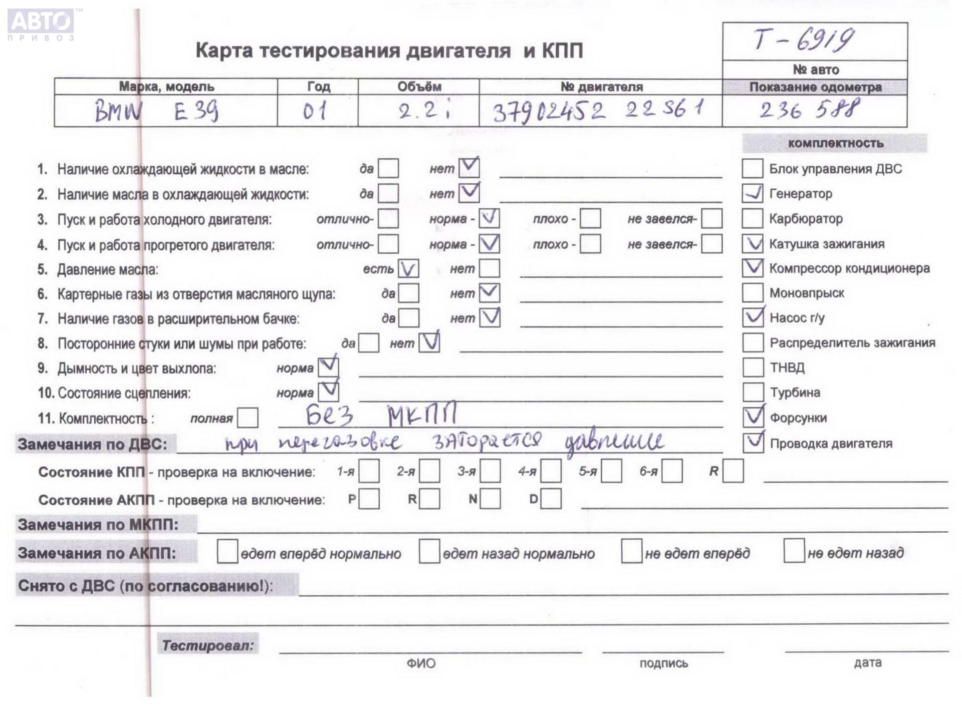 | Марка / Модель / Год: | BMW 5 E39 (1995-2003) 2001 |