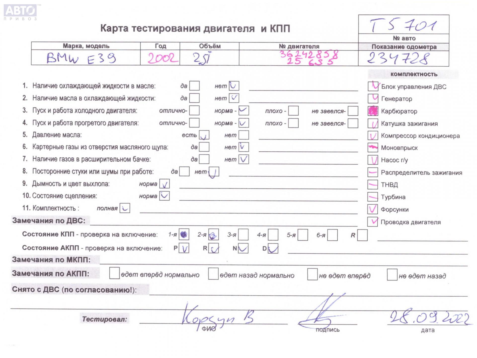 | Марка / Модель / Год: | BMW 5 E39 (1995-2003) 2002 |