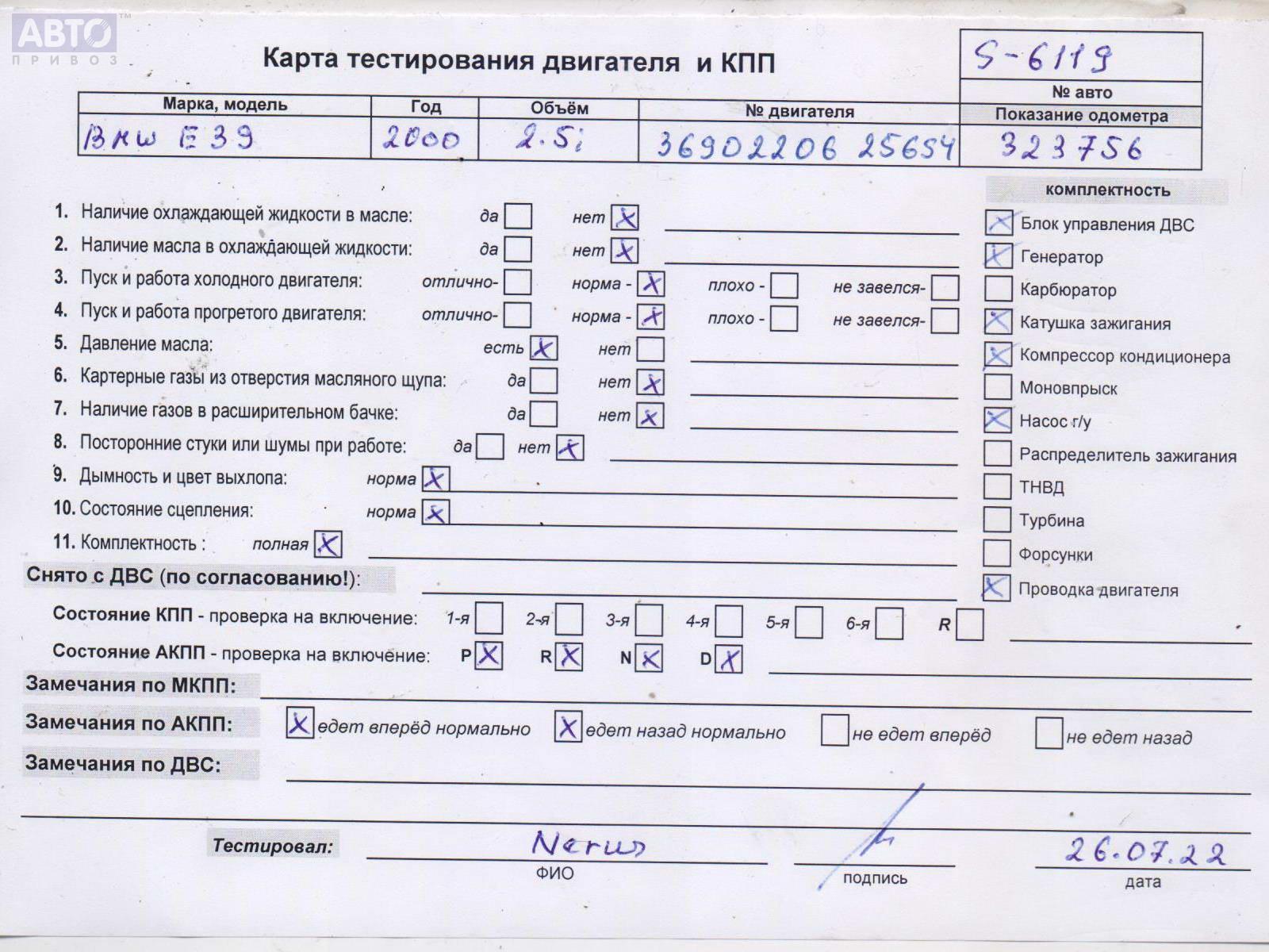 | Автомобиль / VIN: | S6119 WBADM41010GM17031 |