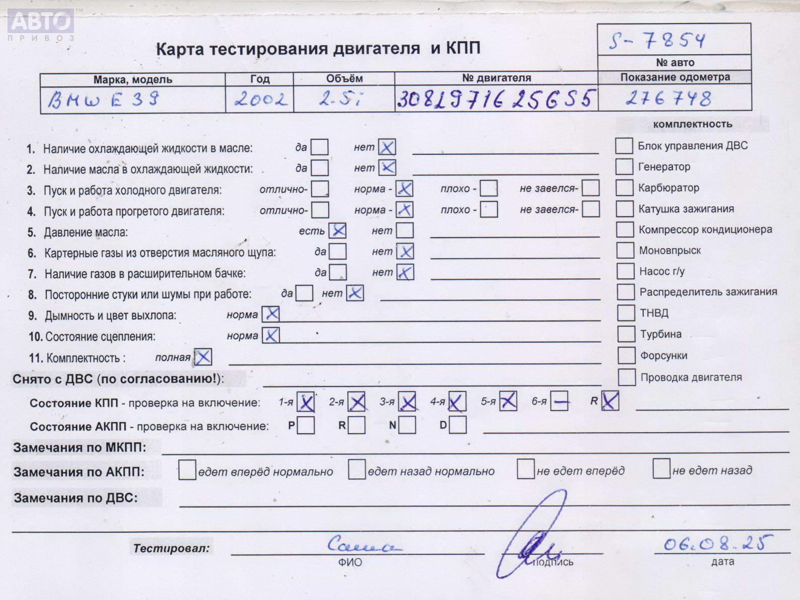 | Автомобиль / VIN: | S7854 WBADS31010GZ83500 |
