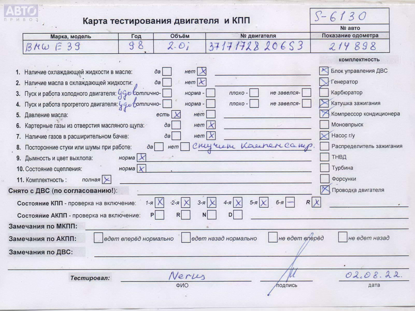 | Автомобиль / VIN: | S6130 WBADD11020BN60534 |
