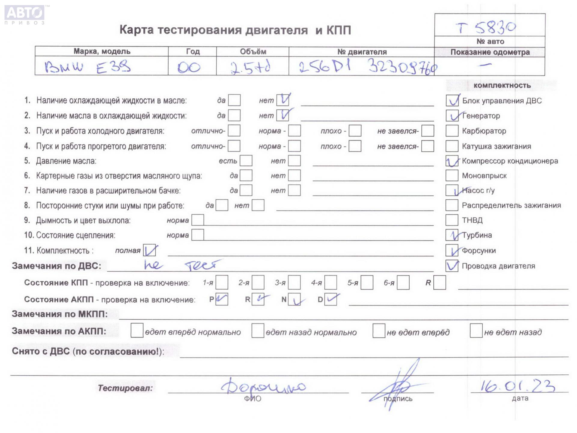| Автомобиль / VIN: | T5830 WBADL01040GY05849 |
