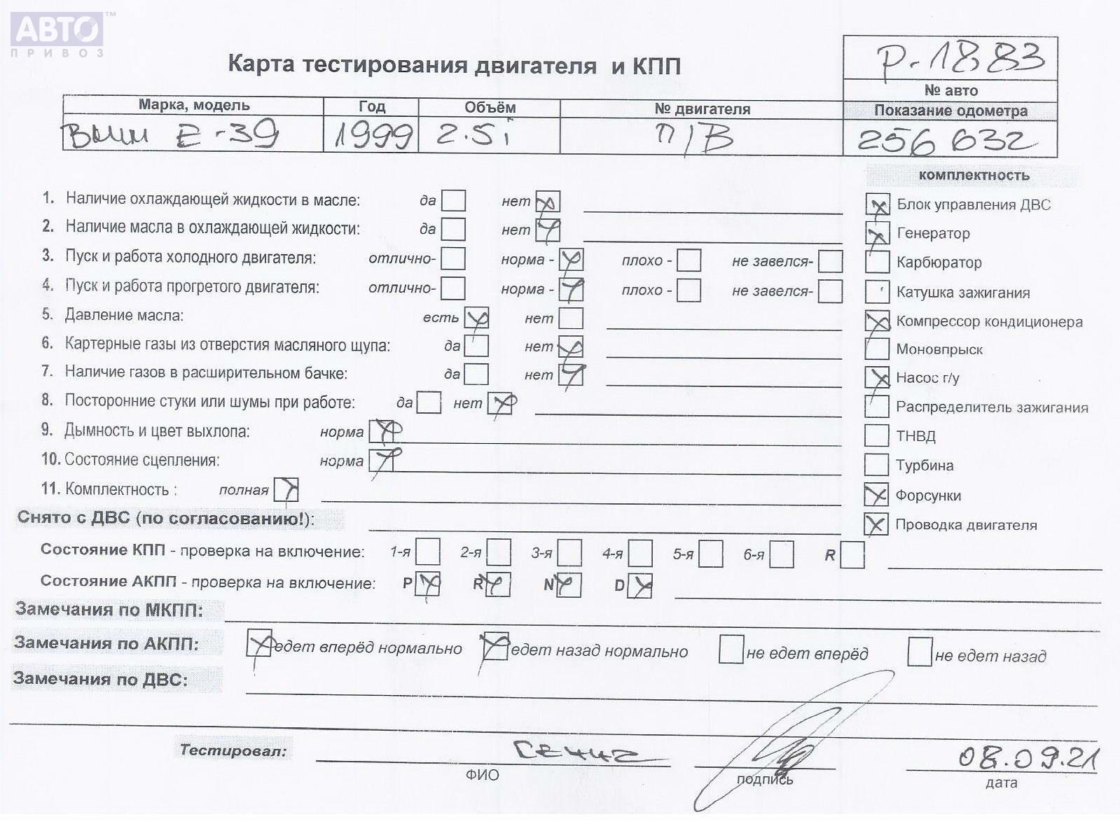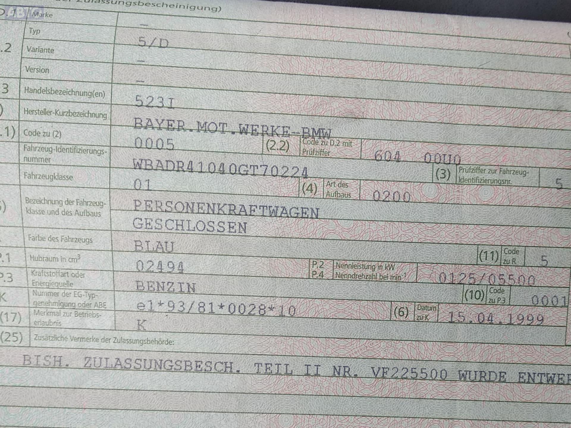| Марка / Модель / Год: | BMW 5 E39 (1995-2003) 1999 |