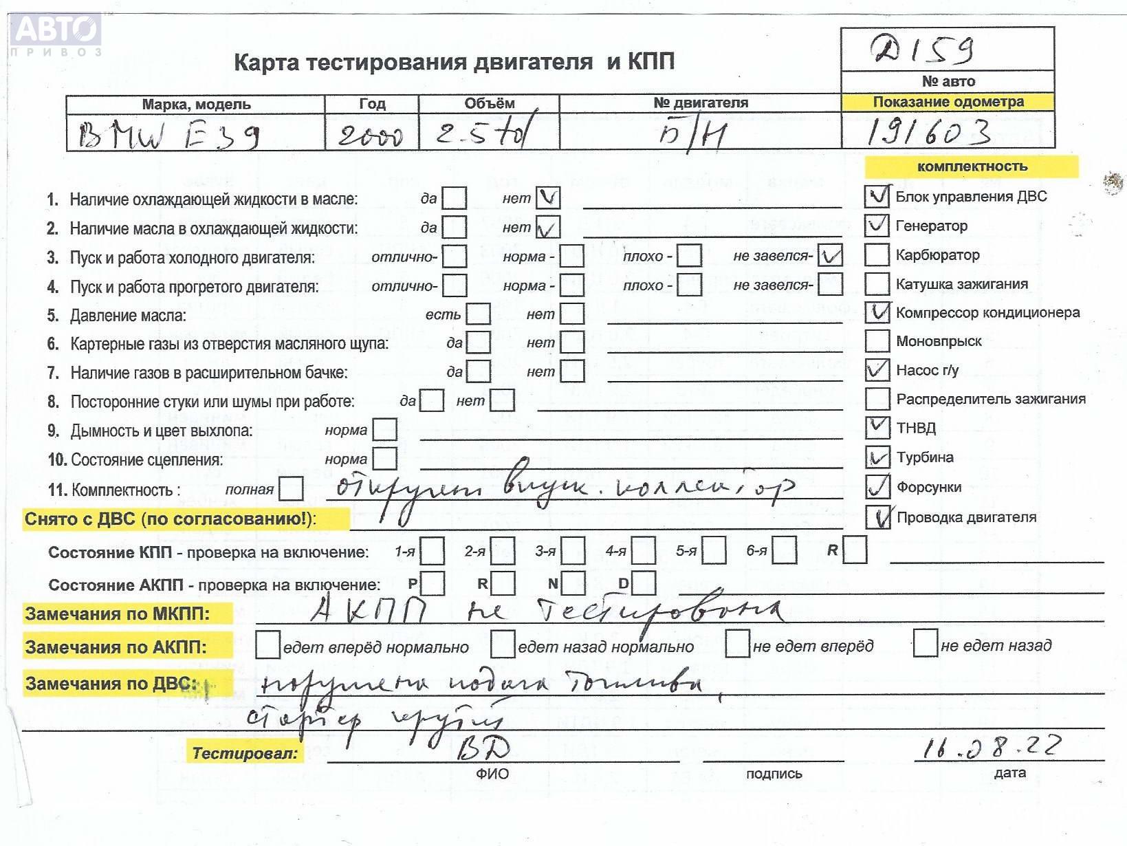 | Марка / Модель / Год: | BMW 5 E39 (1995-2003) 2000 |
