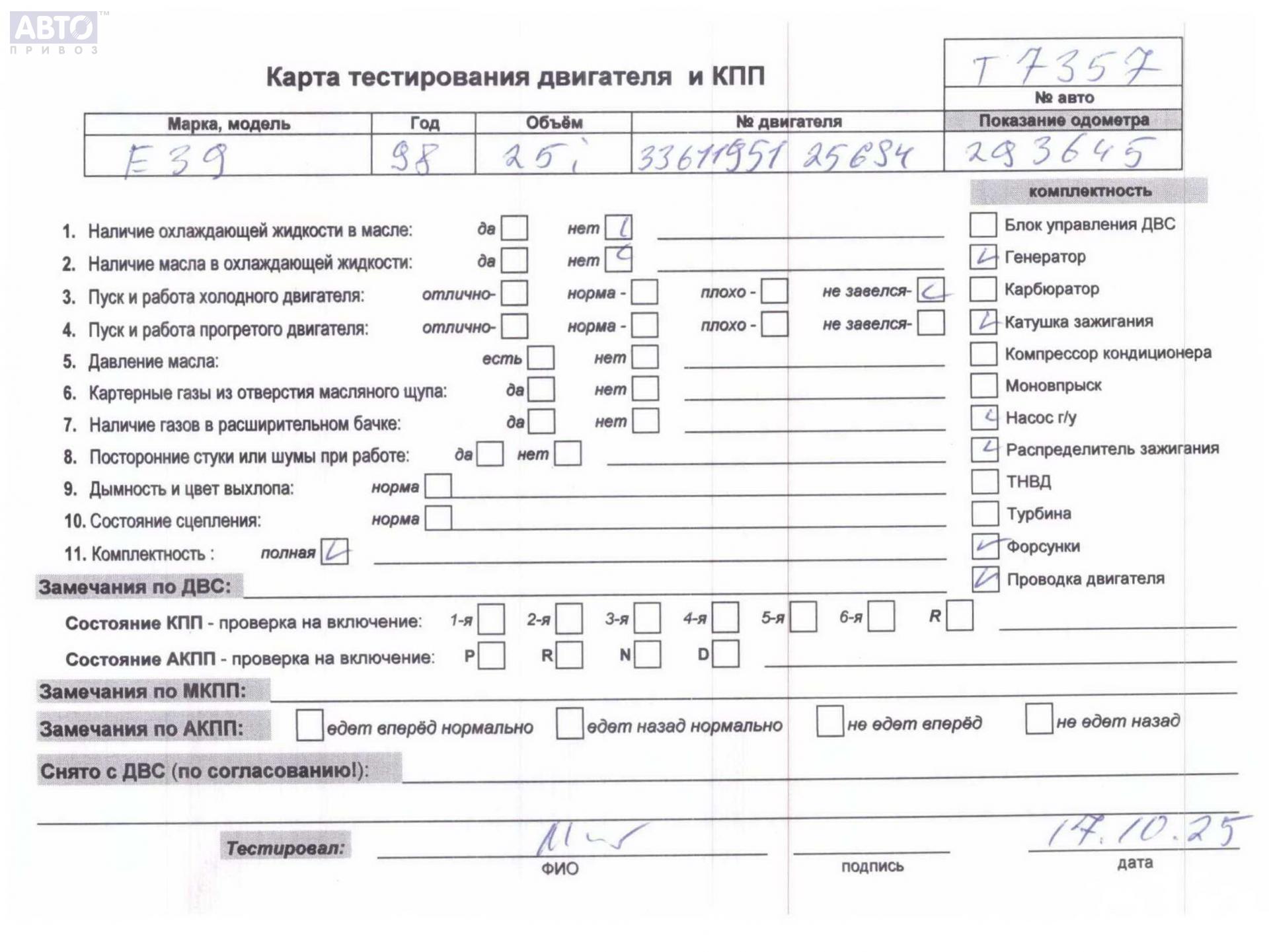 | Марка / Модель / Год: | BMW 5 E39 (1995-2003) 1999 |