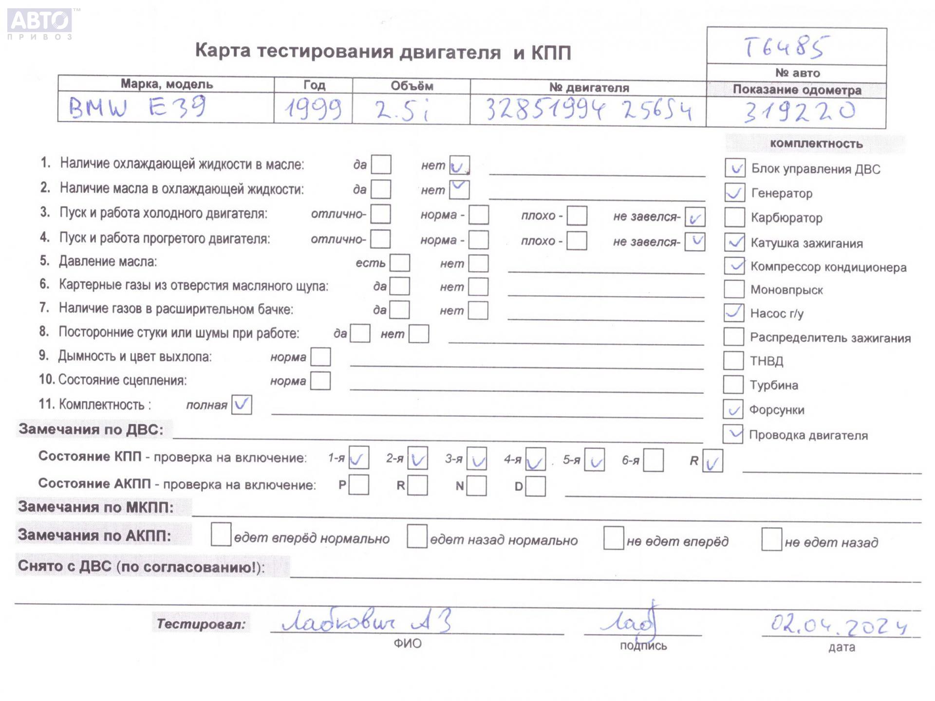 | Марка / Модель / Год: | BMW 5 E39 (1995-2003) 1999 |