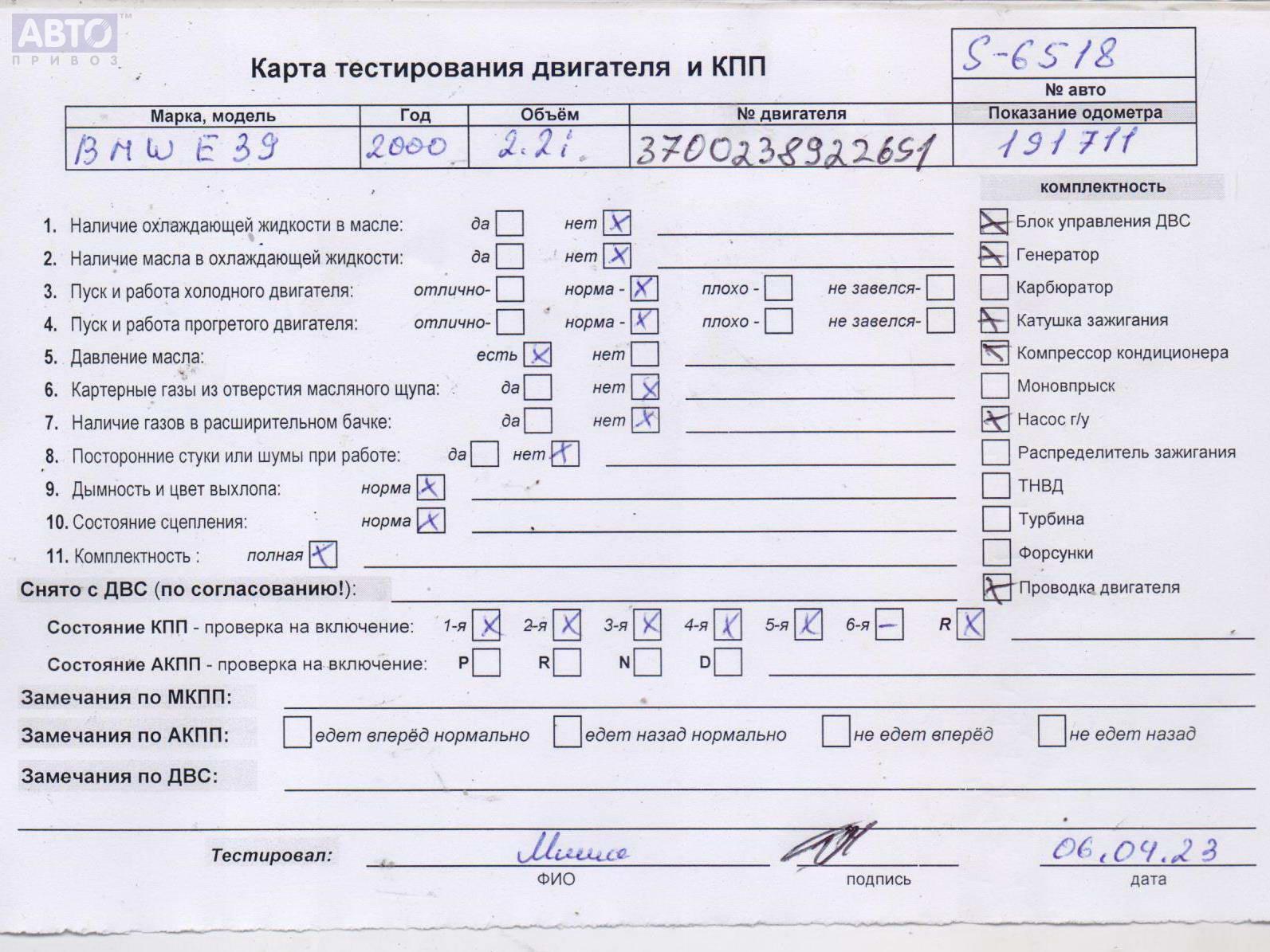 | Автомобиль / VIN: | S6518 WBADS11030GZ65746 |
