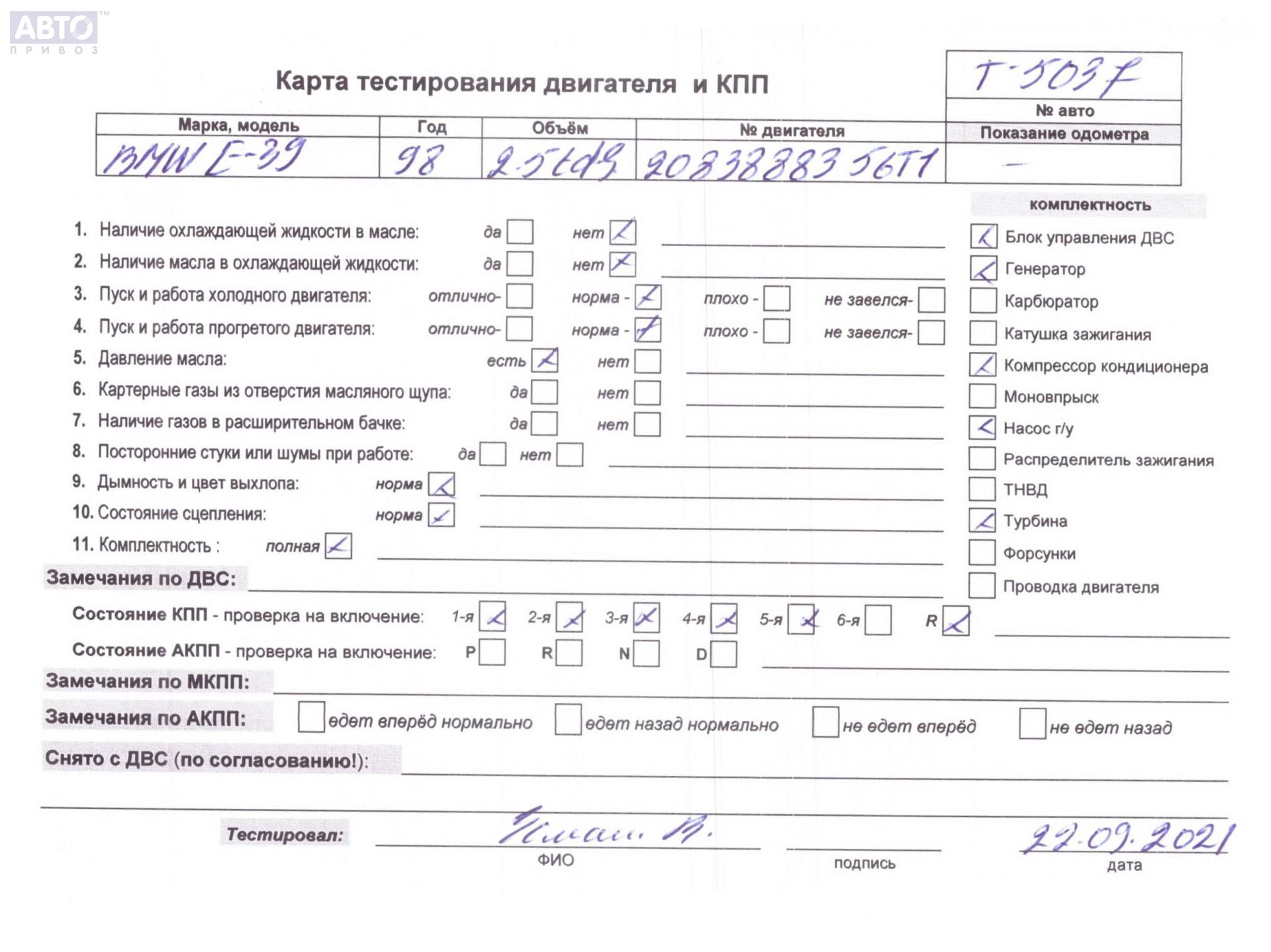 | Марка / Модель / Год: | BMW 5 E39 (1995-2003) 1998 |