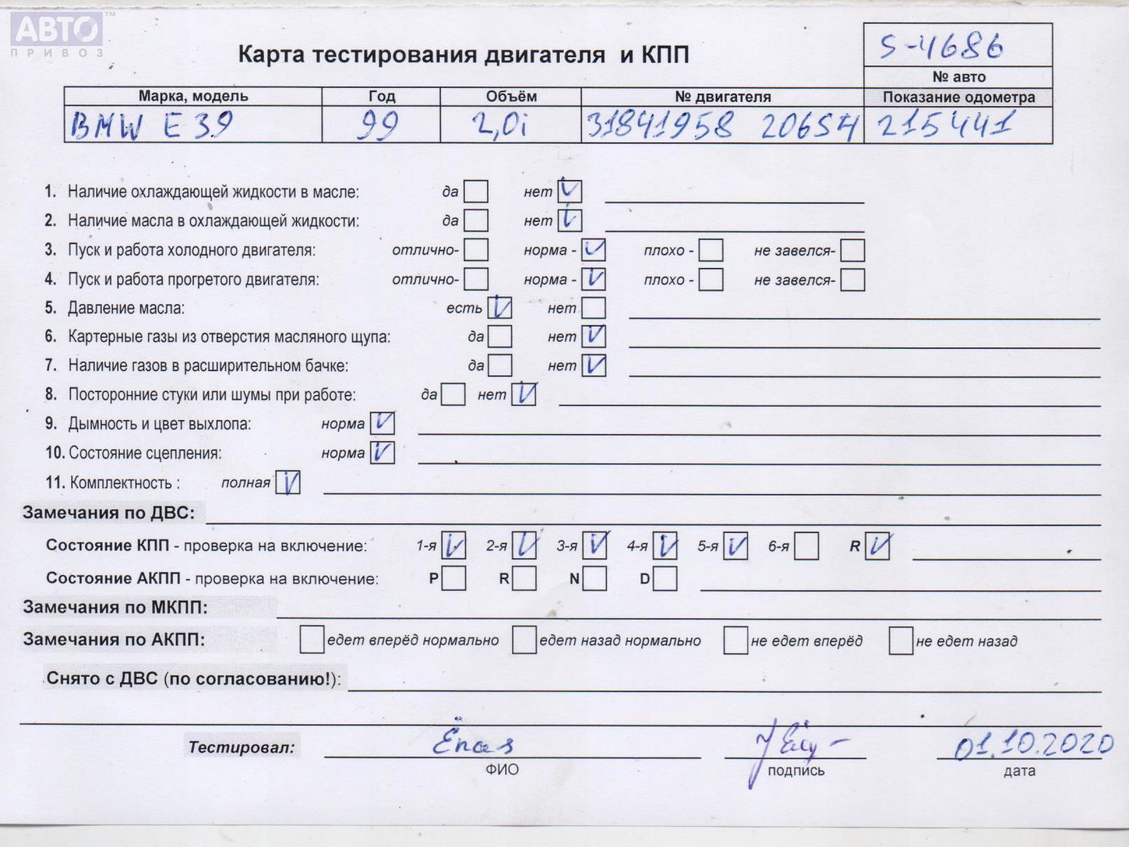 | Марка / Модель / Год: | BMW 5 E39 (1995-2003) 1999 |