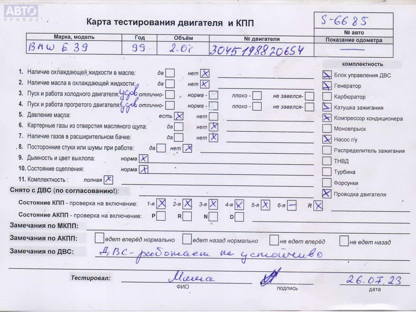 | Марка / Модель / Год: | BMW 5 E39 (1995-2003) 1999 |