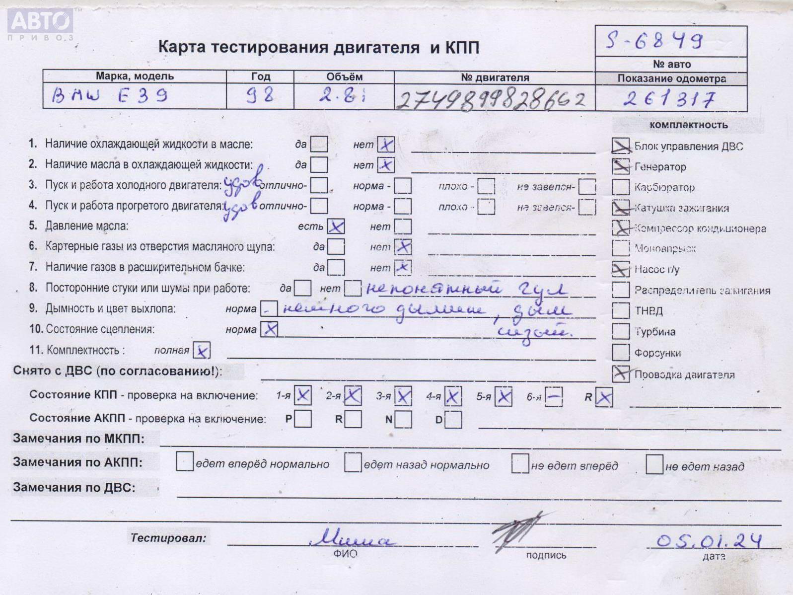 | Автомобиль / VIN: | S6849 WBADM51030GS00277 |