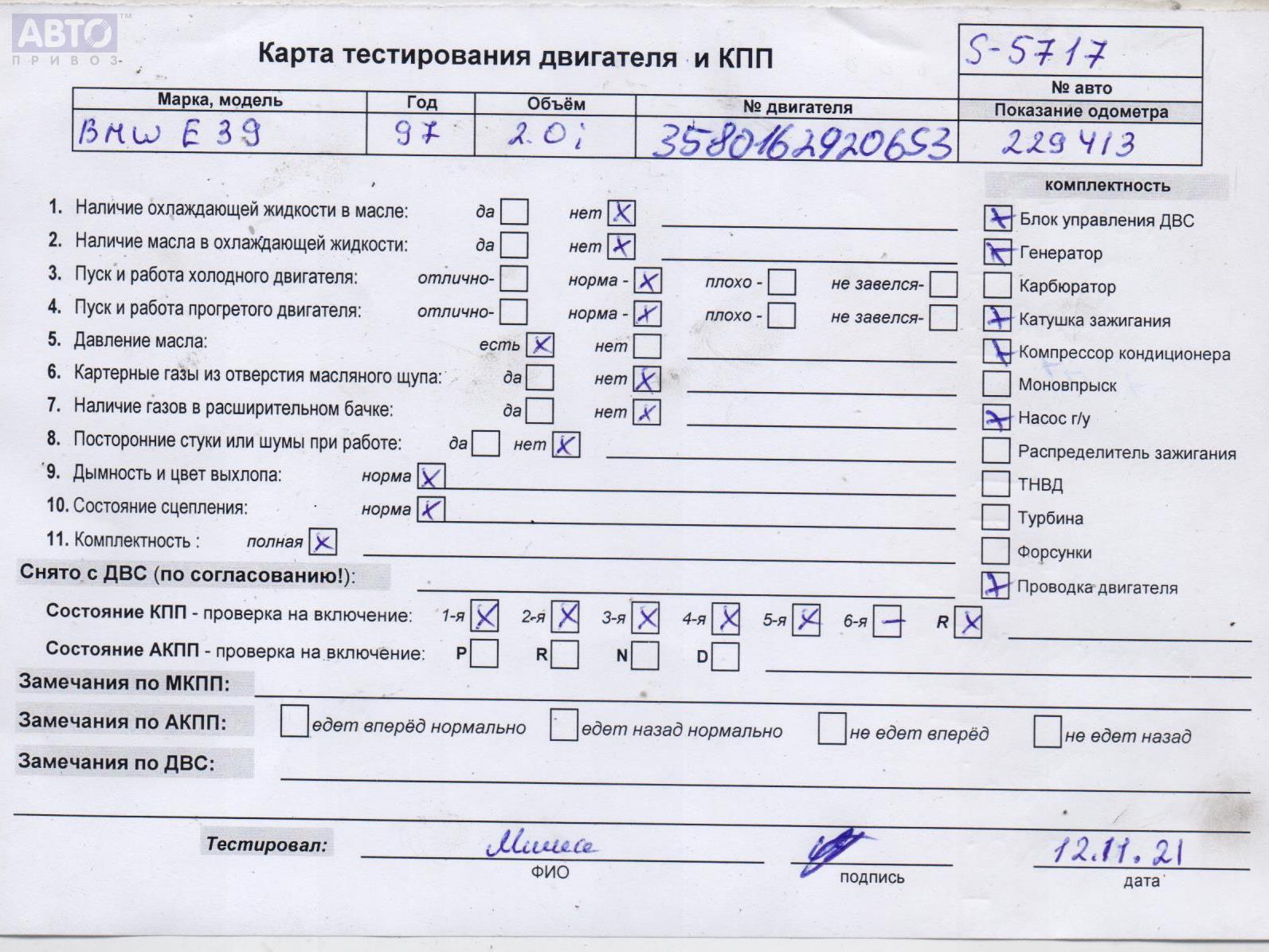 | Марка / Модель / Год: | BMW 5 E39 (1995-2003) 1997 |