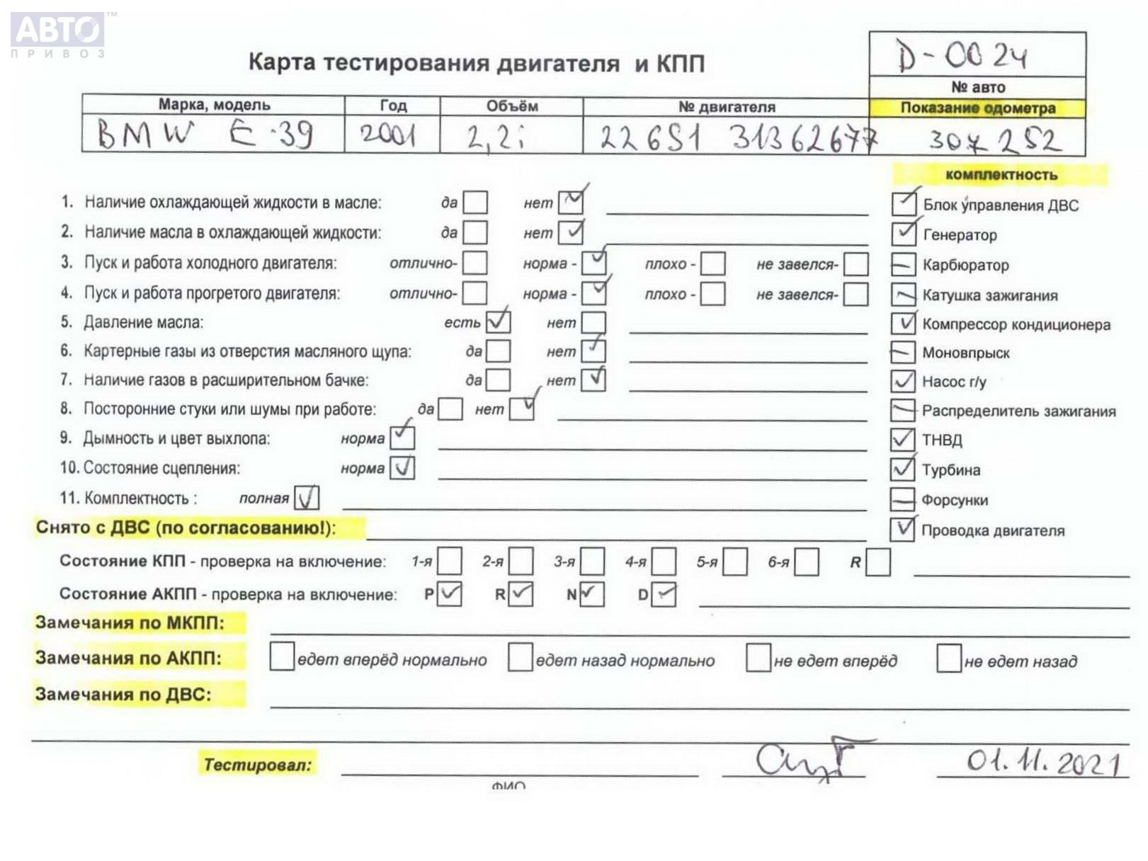 | Марка / Модель / Год: | BMW 5 E39 (1995-2003) 2001 |