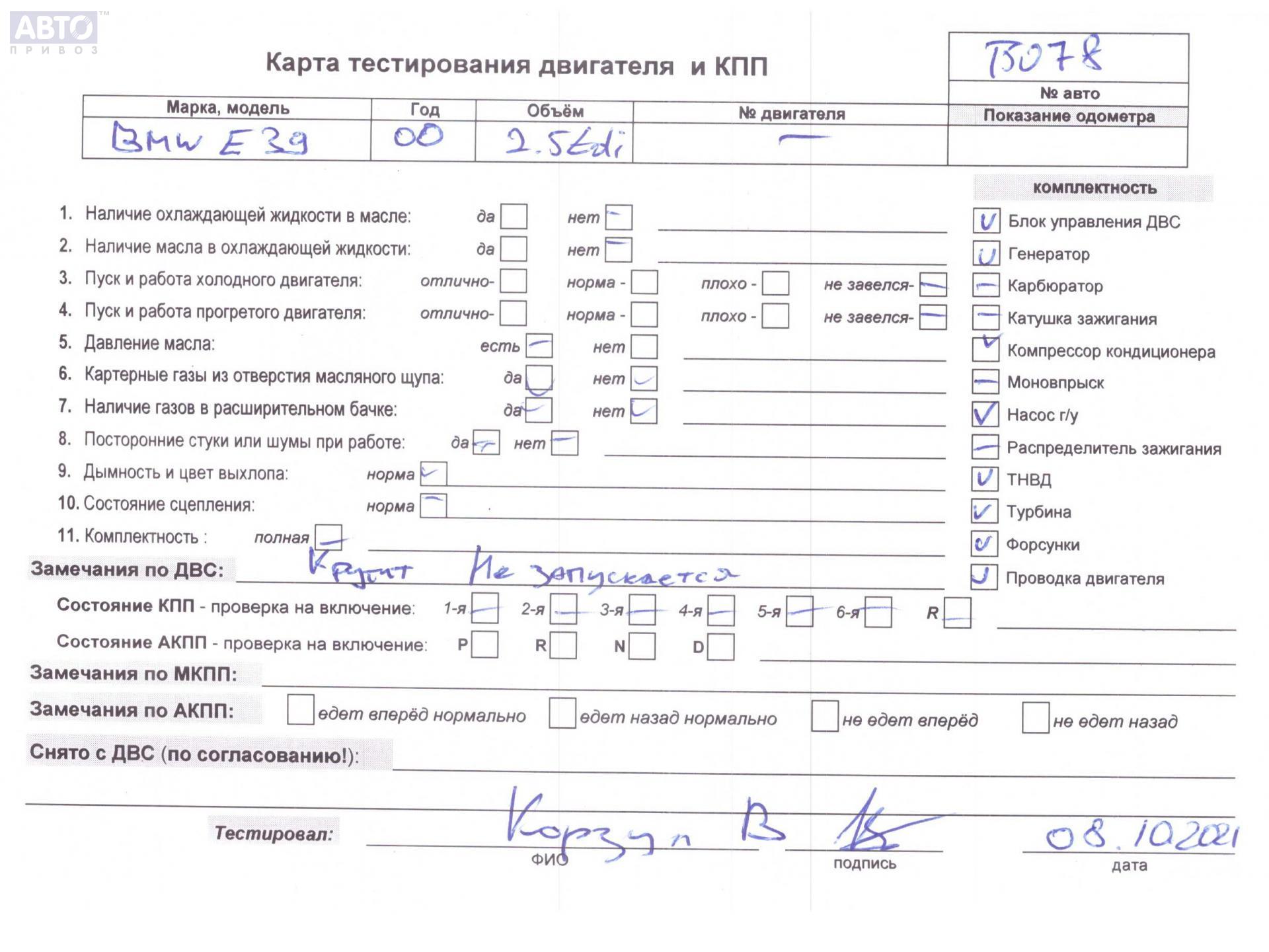 | Марка / Модель / Год: | BMW 5 E39 (1995-2003) 2001 |