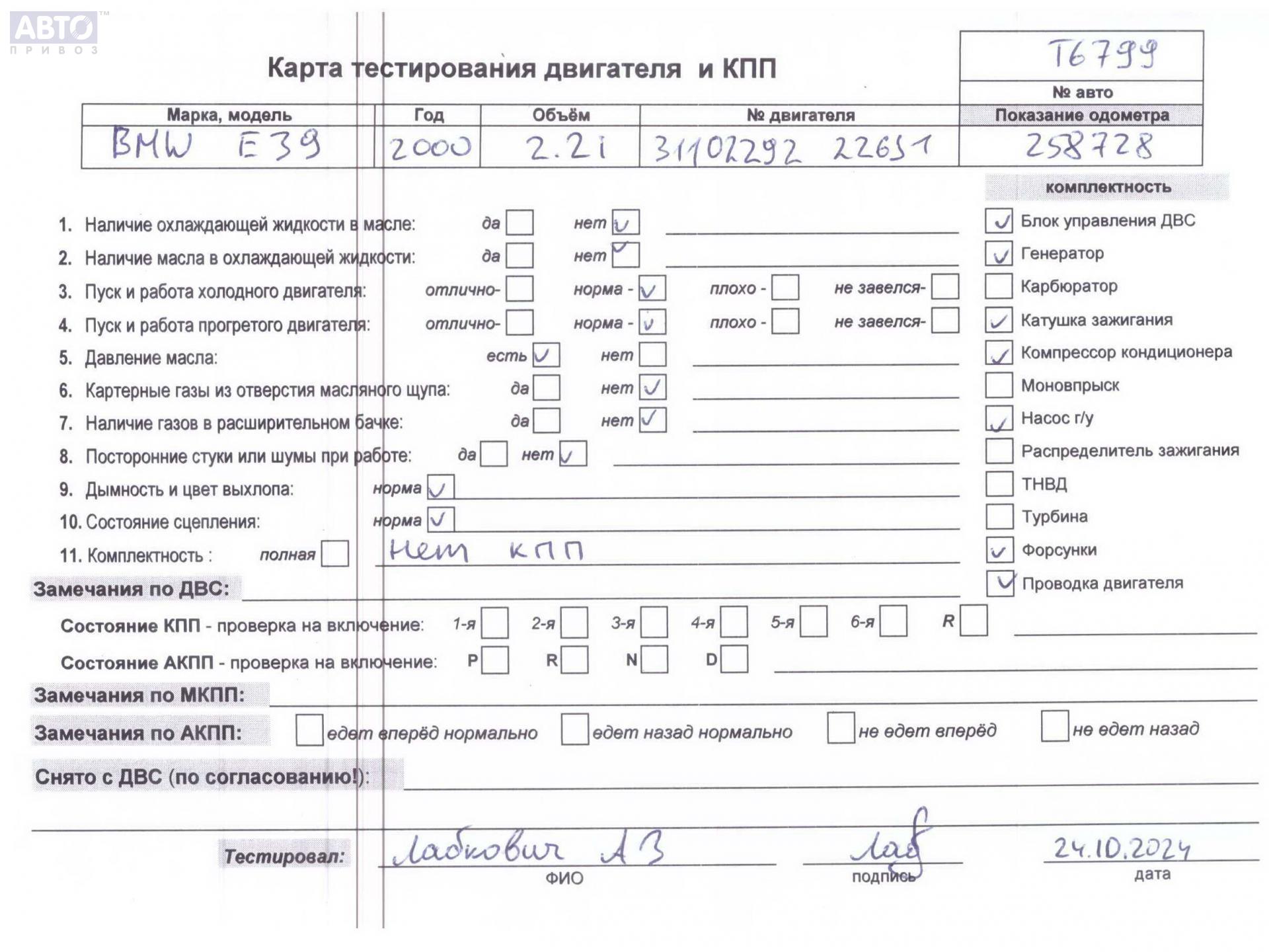 | Марка / Модель / Год: | BMW 5 E39 (1995-2003) 2001 |