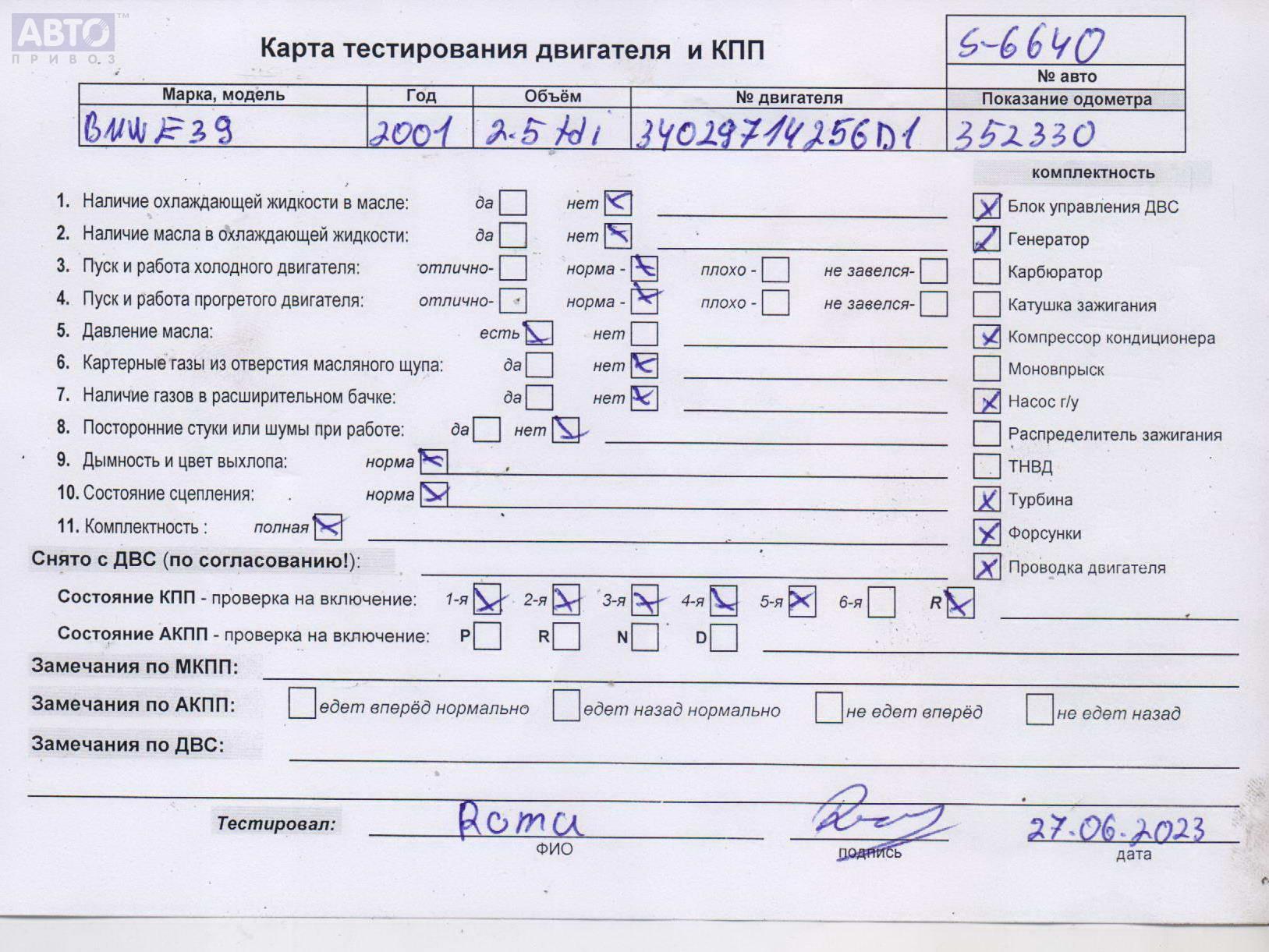 | Марка / Модель / Год: | BMW 5 E39 (1995-2003) 2001 |