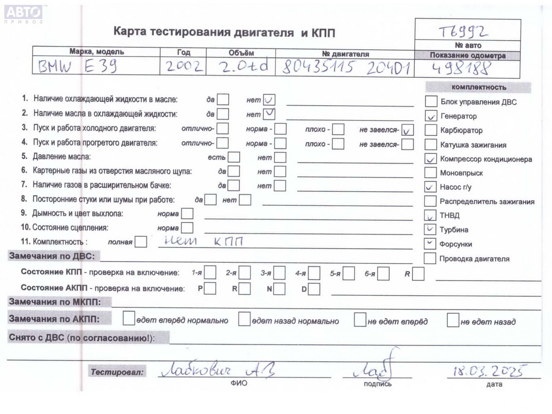| Марка / Модель / Год: | BMW 5 E39 (1995-2003) 2002 |