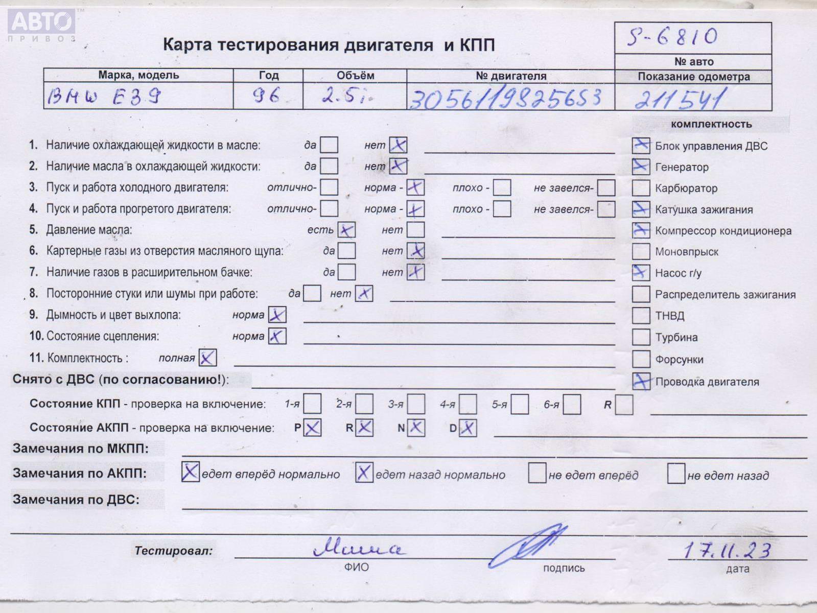| Марка / Модель / Год: | BMW 5 E39 (1995-2003) 1996 |