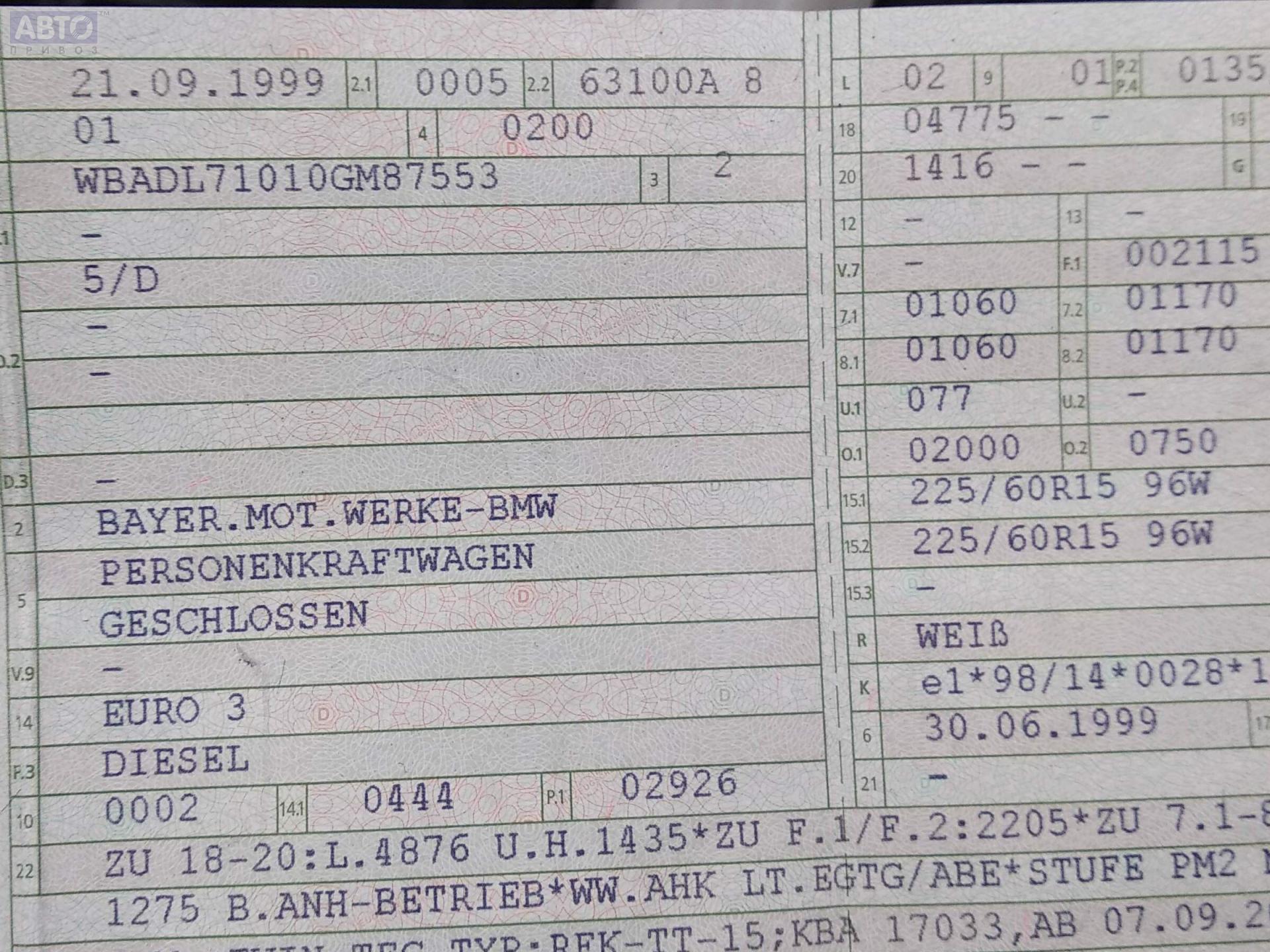 | Марка / Модель / Год: | BMW 5 E39 (1995-2003) 1999 |
