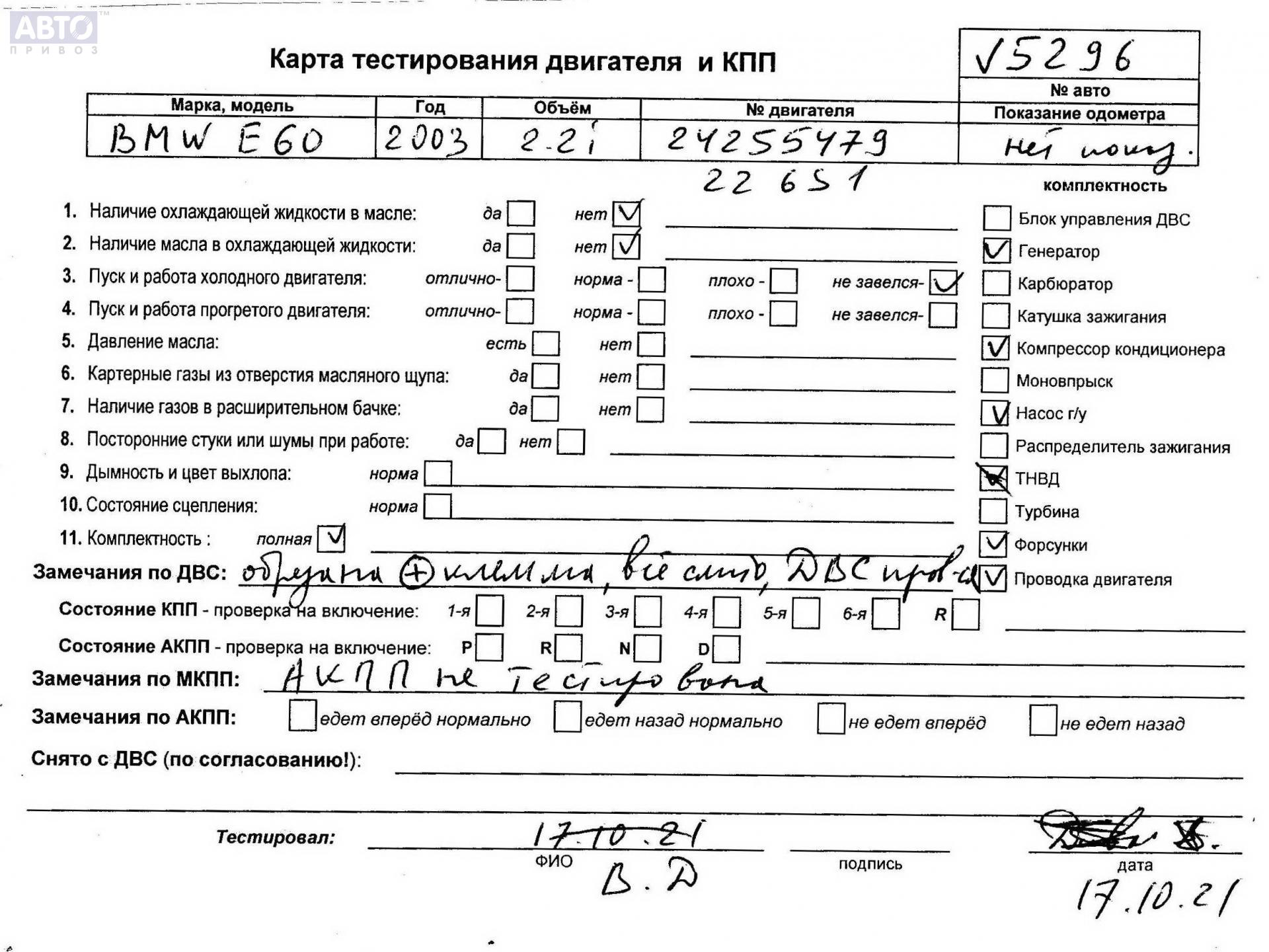 | Марка / Модель / Год: | BMW 5 E60/E61 (2003-2010) 2003 |