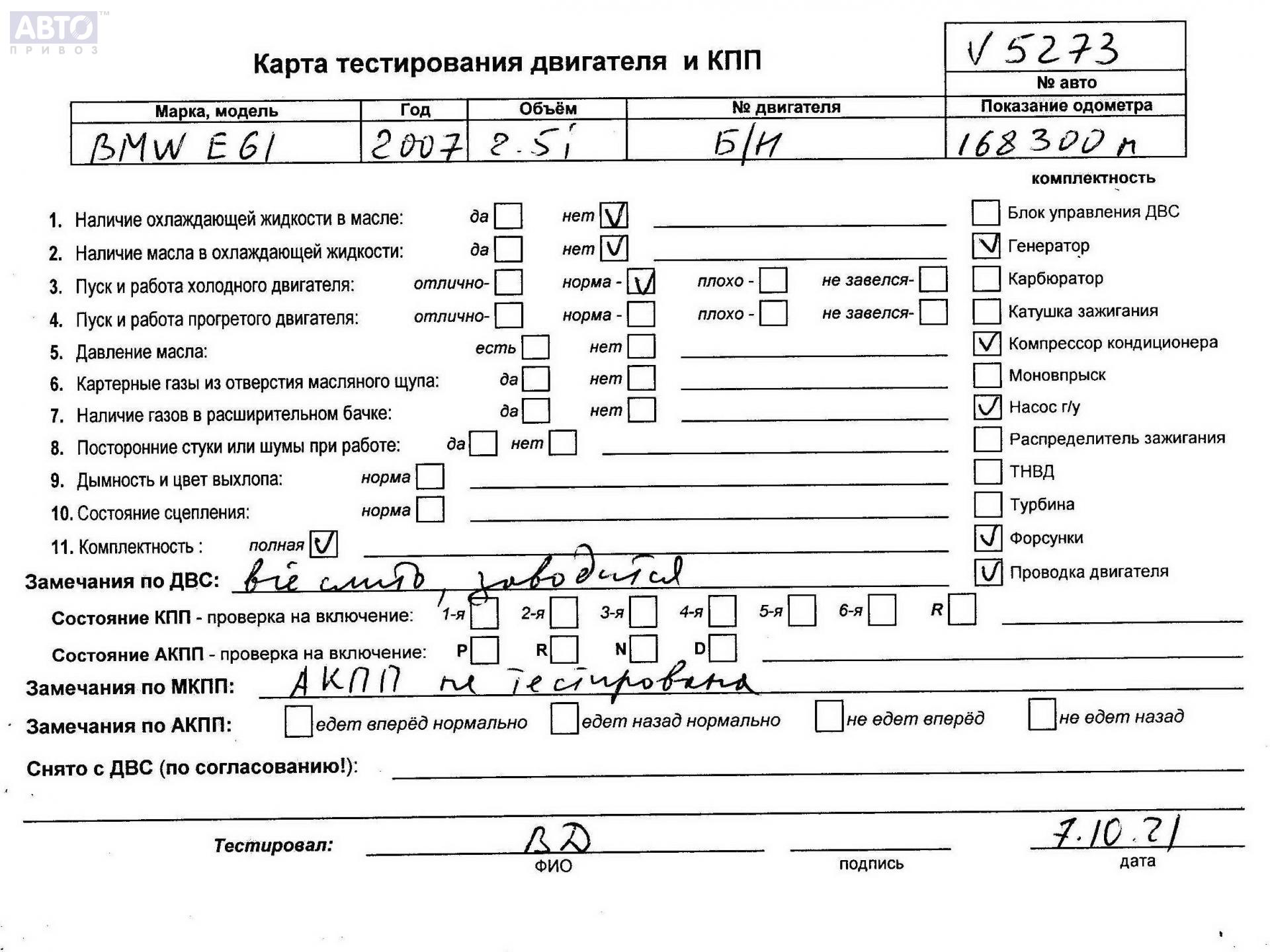 | Марка / Модель / Год: | BMW 5 E60/E61 (2003-2010) 2007 |