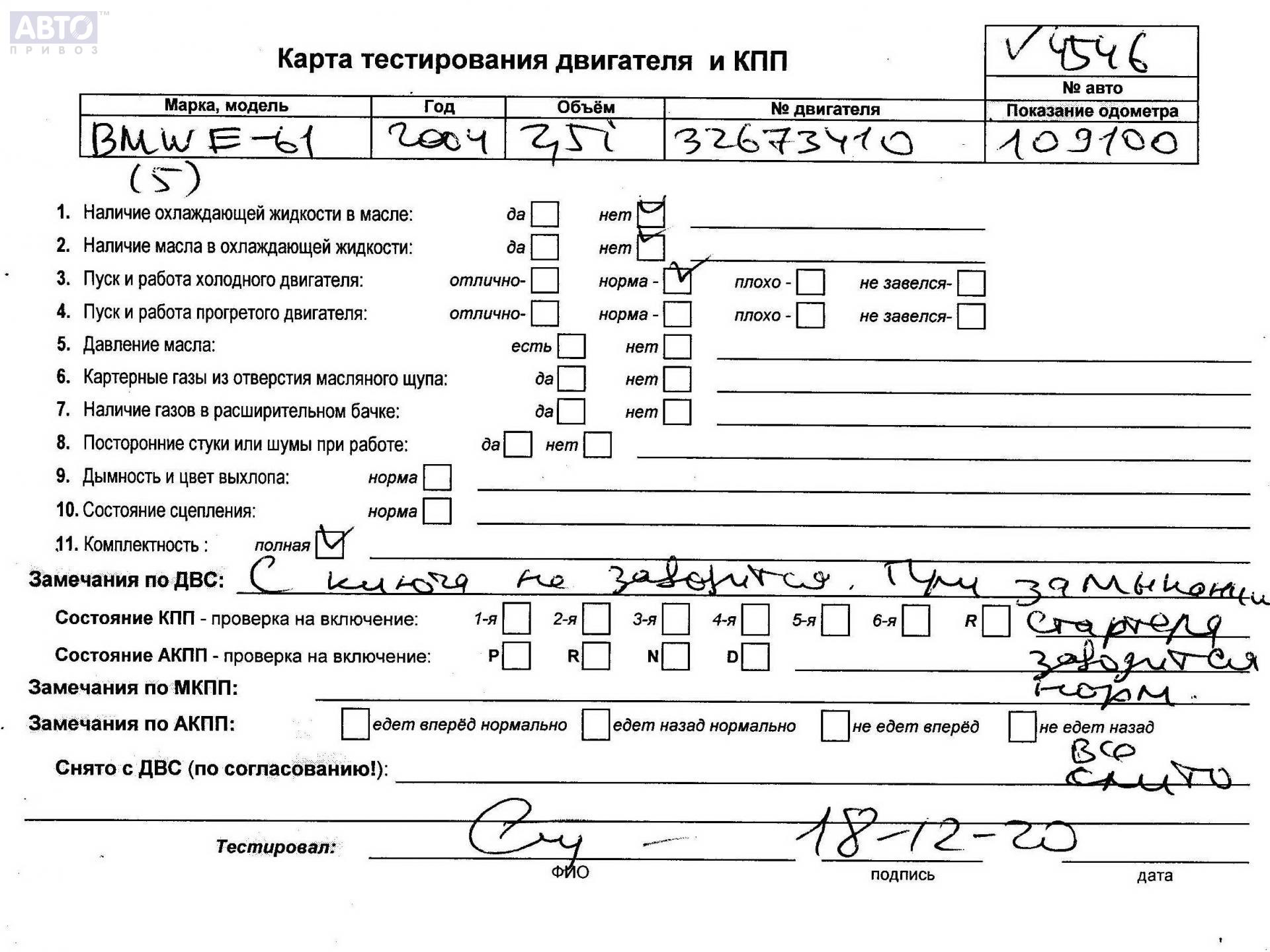 | Марка / Модель / Год: | BMW 5 E60/E61 (2003-2010) 2004 |
